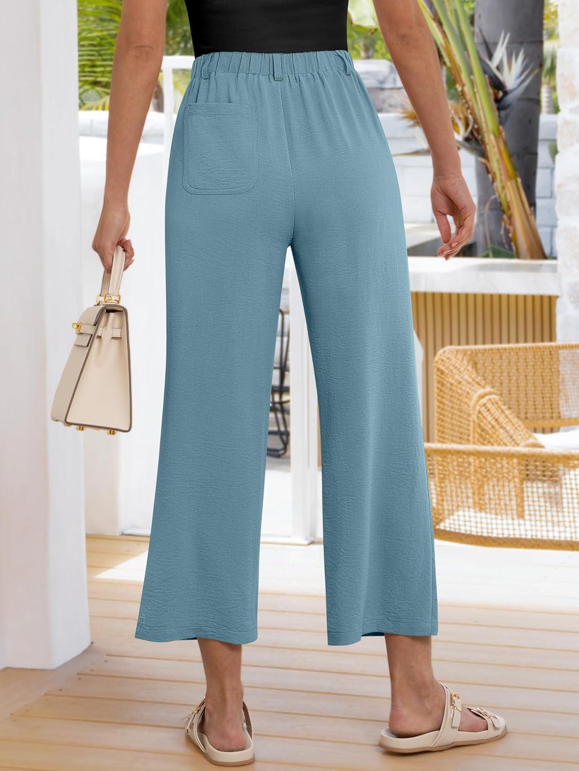 ANRABESS Womens Wide Leg Pants Summer Lounge Elastic Waist Palazzo Pants Lightweight Beach Vacation Trousers with Pockets(Lake)