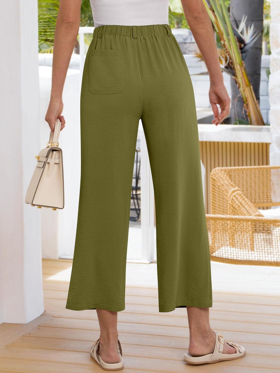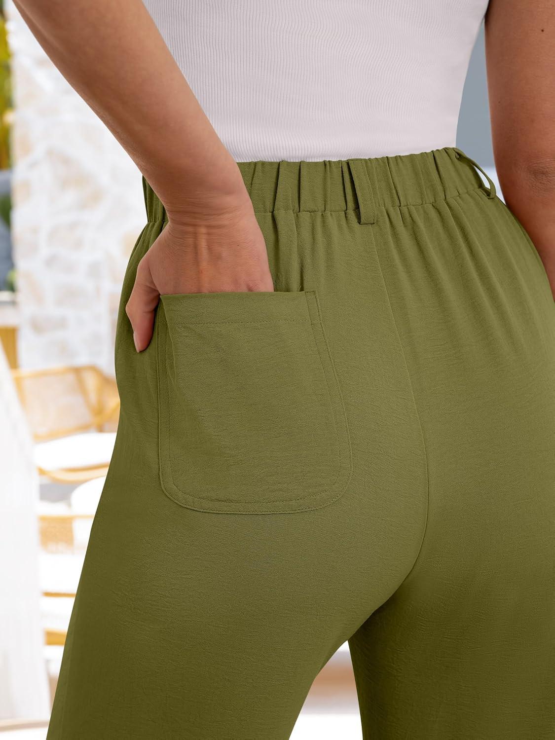 ANRABESS Womens Wide Leg Pants Summer Lounge Elastic Waist Palazzo Pants Lightweight Beach Vacation Trousers with Pockets(Olive Green)