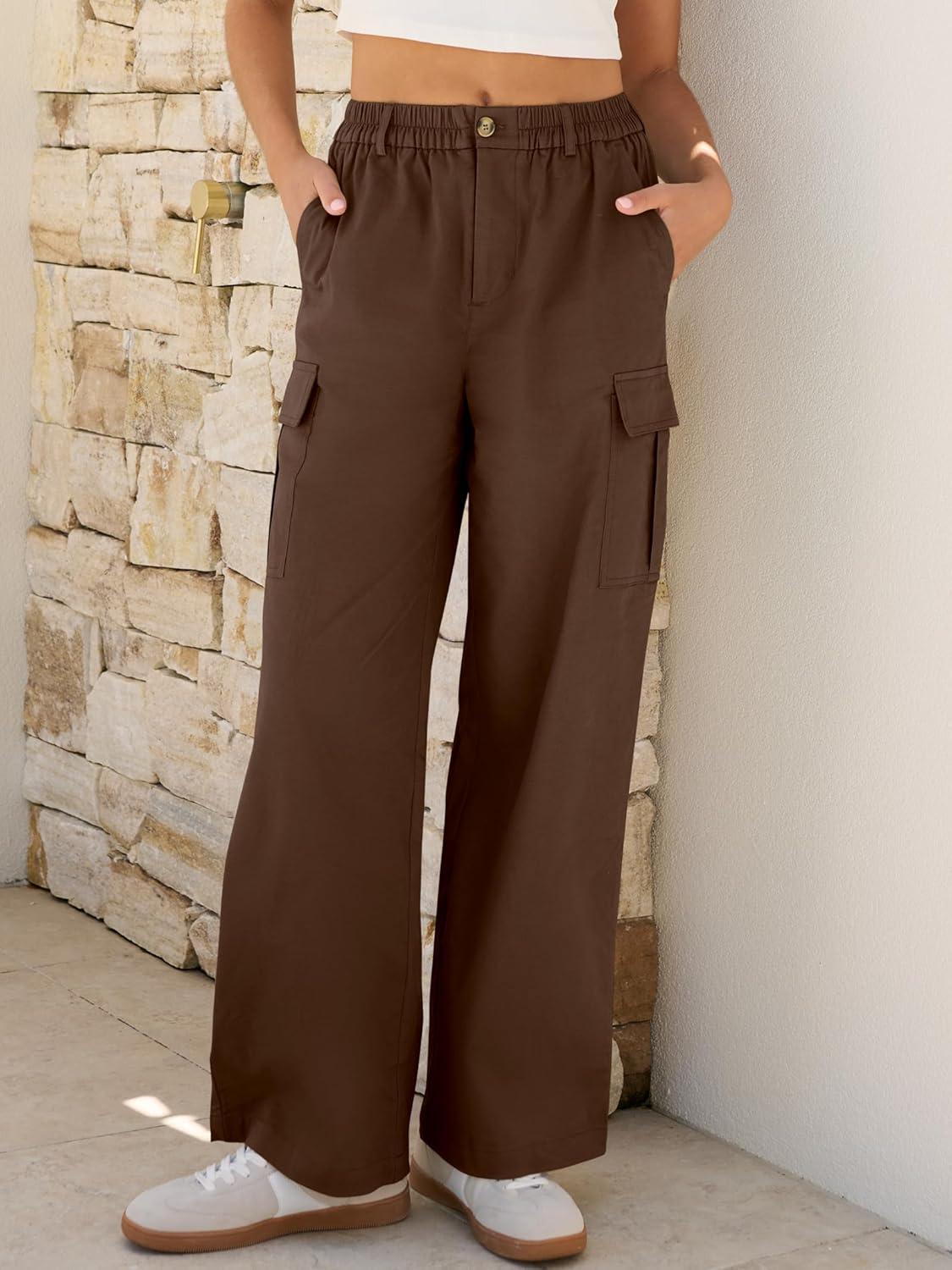 imageANRABESS Womens Wide Leg Scrub Cargo Pants High Waisted Lightweight Casual Relaxed Fit Pants 2026 Vacation Y2K StreetwearCoffee
