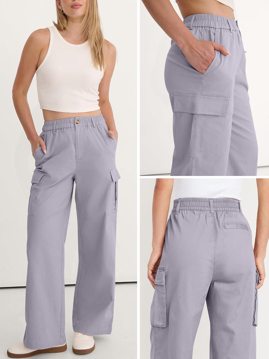 ANRABESS Womens Wide Leg Scrub Cargo Pants High Waisted Lightweight Casual Relaxed Fit Pants 2026 Vacation Y2K Streetwear(Light Grey)