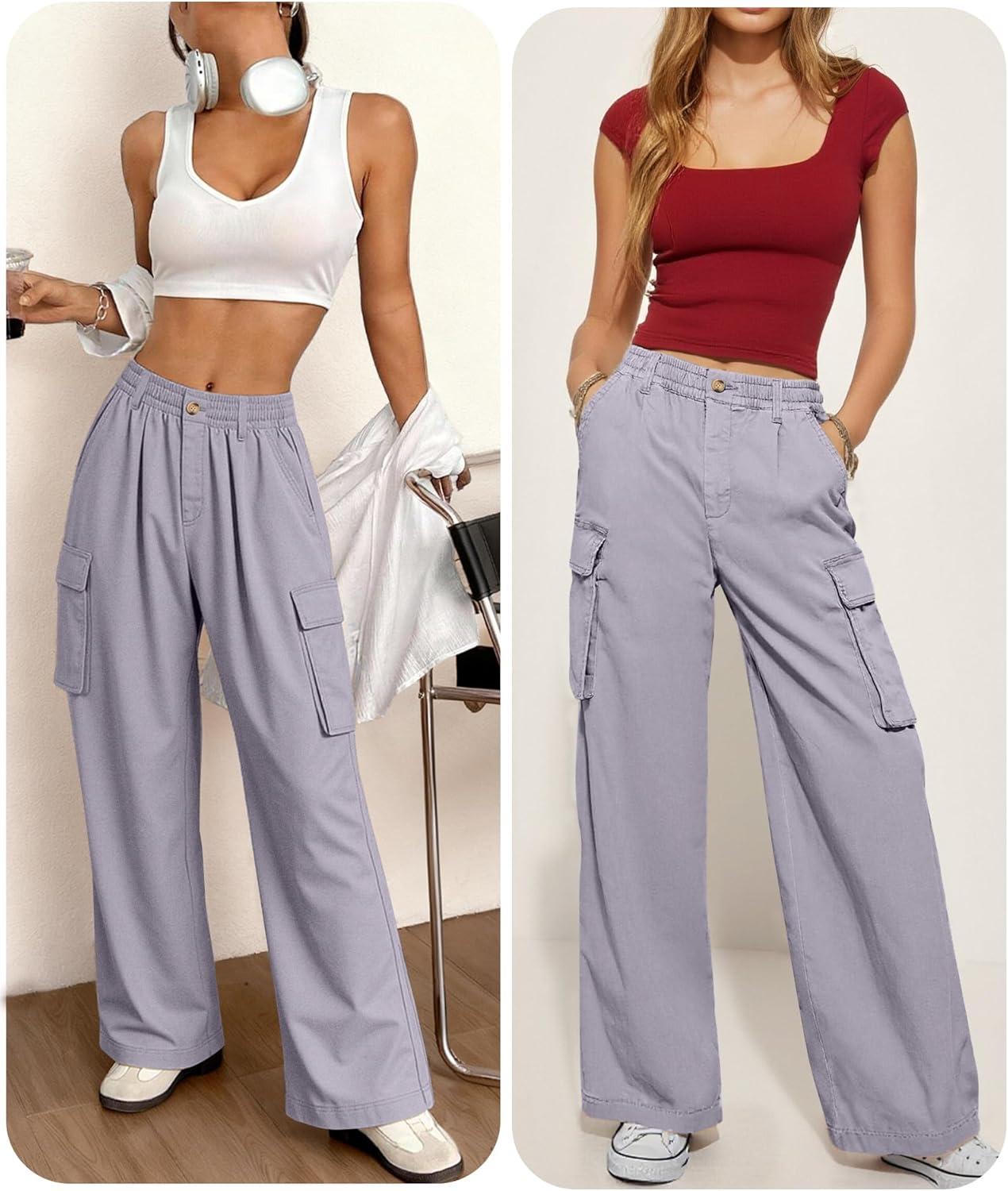 Womens Wide Leg Scrub Cargo Pants High Waisted Lightweight Casual Relaxed Fit Pants 2026 Vacation Y2K Streetwear