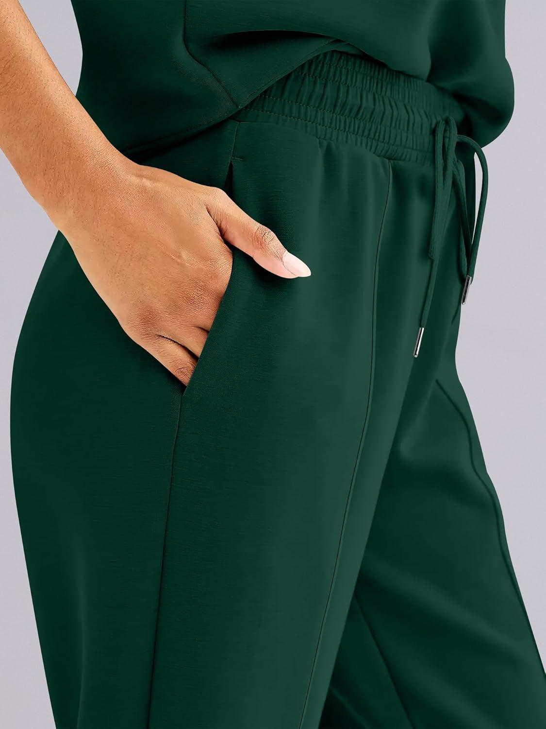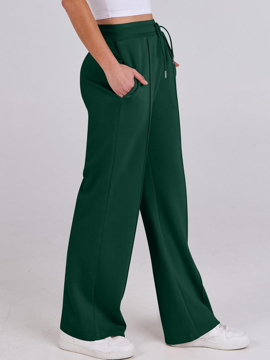 ANRABESS Women's Wide Leg Sweatpants High Waist Baggy Flared Pants Drawstring Athletic Joggers Sweat Pants(Dark Green)