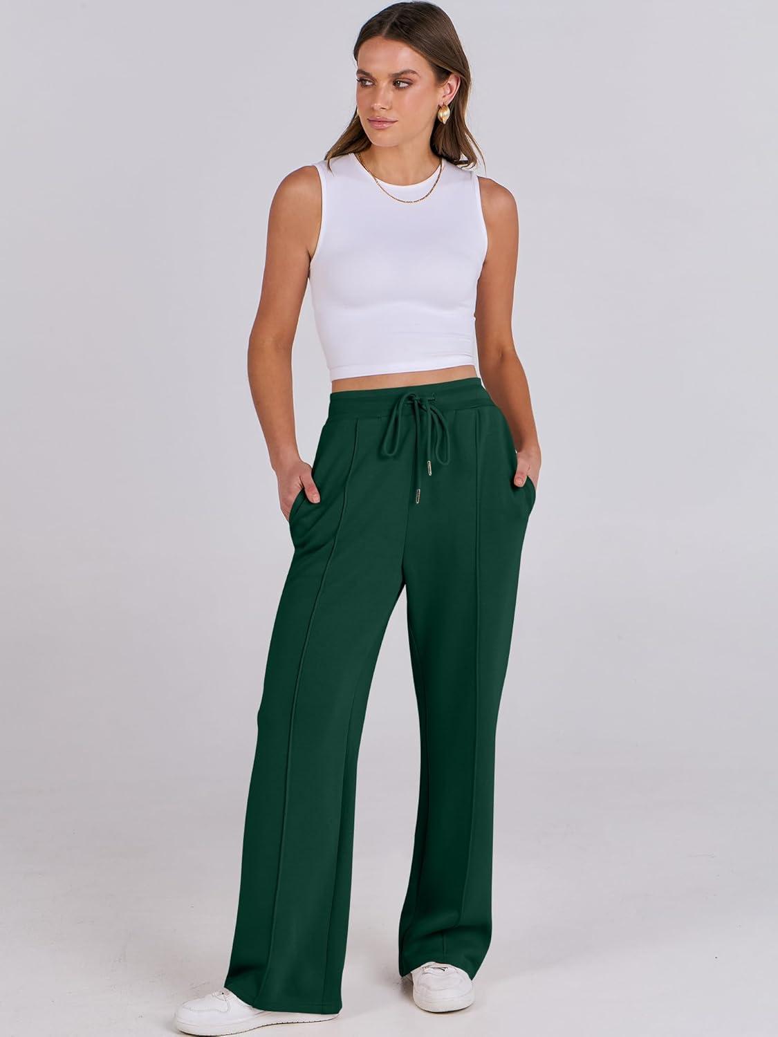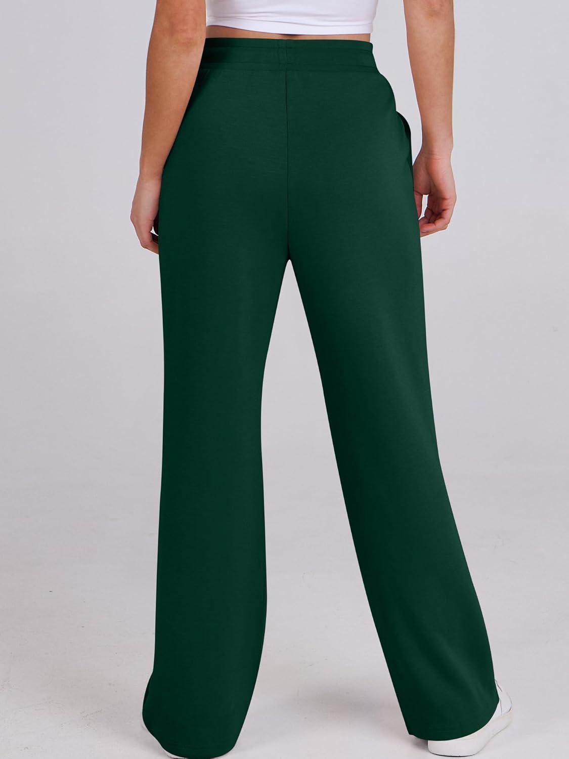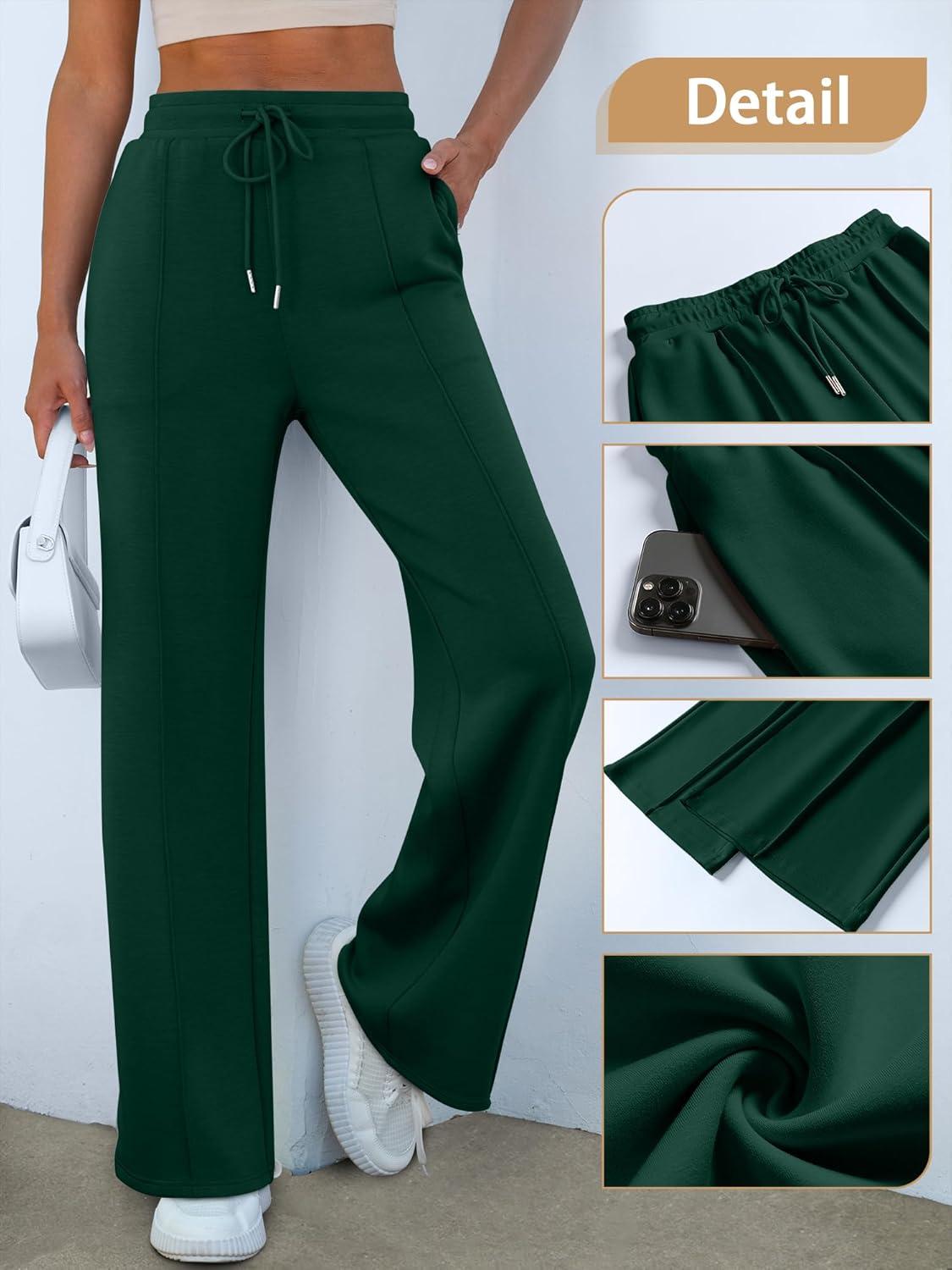 ANRABESS Women’s Wide Leg Sweatpants High Waist Baggy Flared Pants Drawstring Athletic Joggers Sweat Pants(Dark Green)