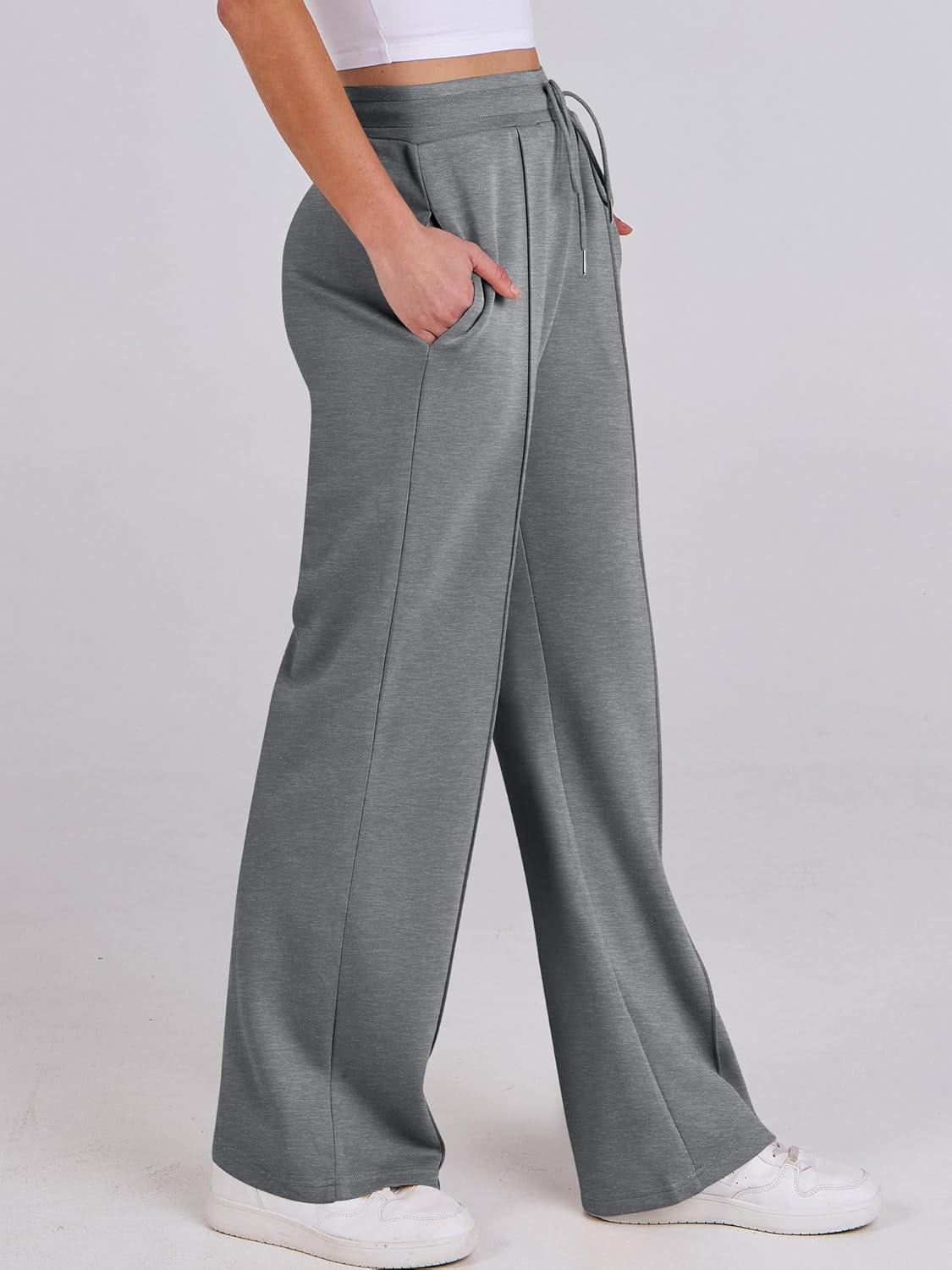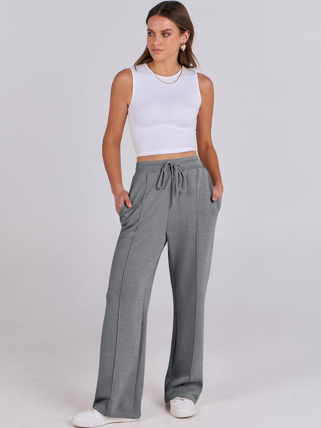 ANRABESS Women’s Wide Leg Sweatpants High Waist Baggy Flared Pants Drawstring Athletic Joggers Sweat Pants(Grey)