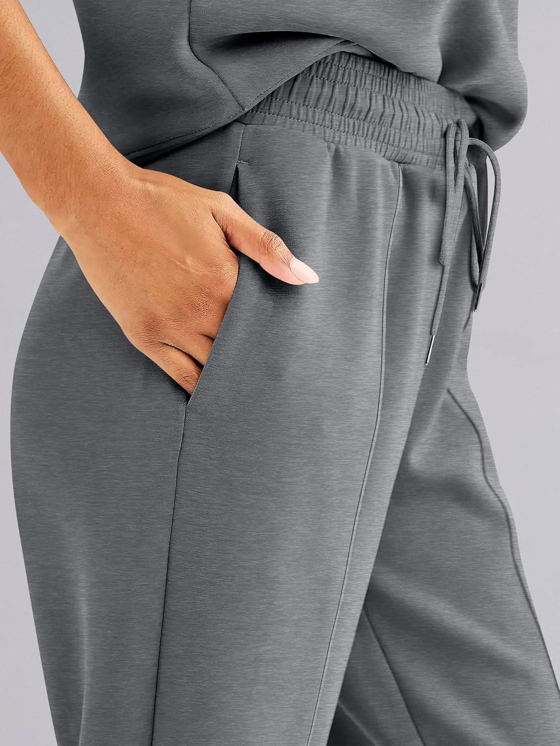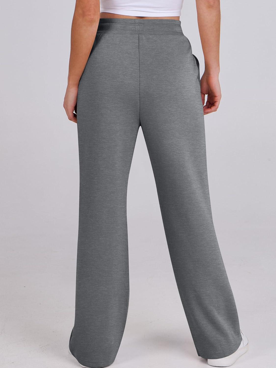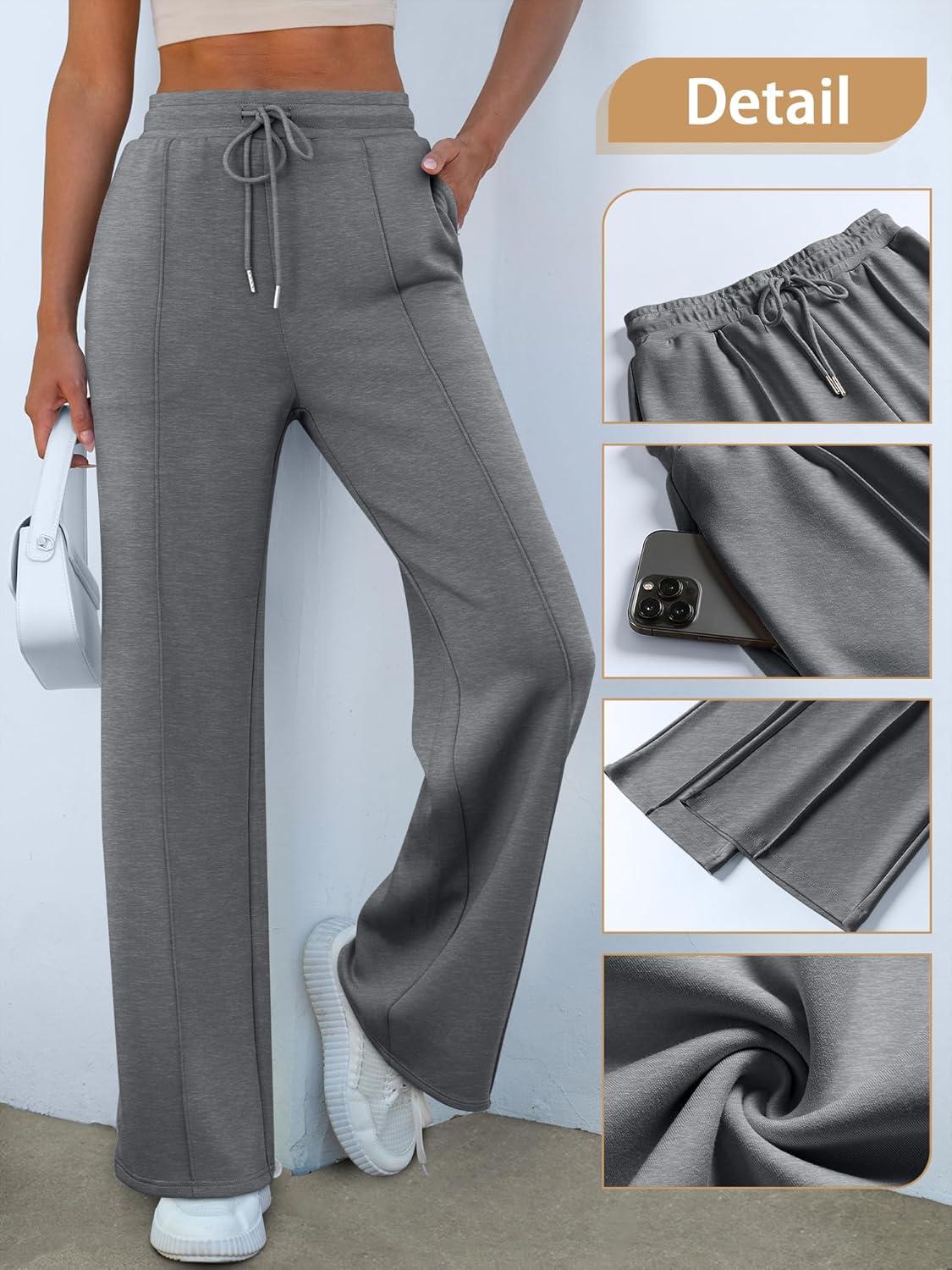 ANRABESS Women’s Wide Leg Sweatpants High Waist Baggy Flared Pants Drawstring Athletic Joggers Sweat Pants(Dark Grey)