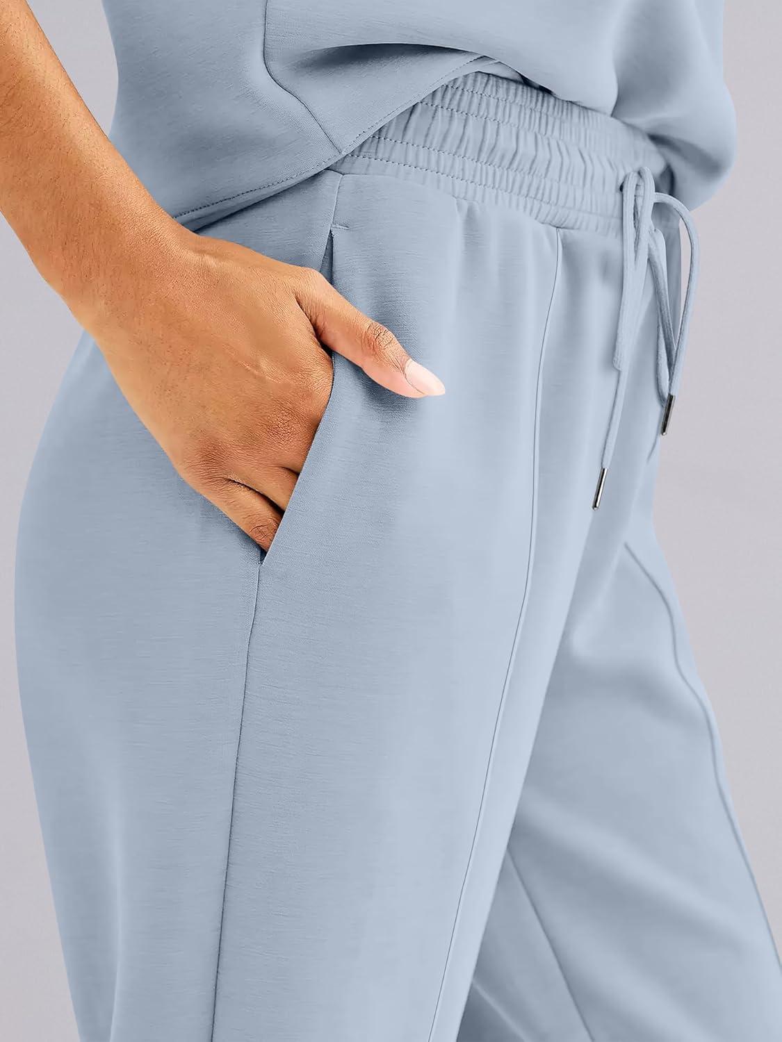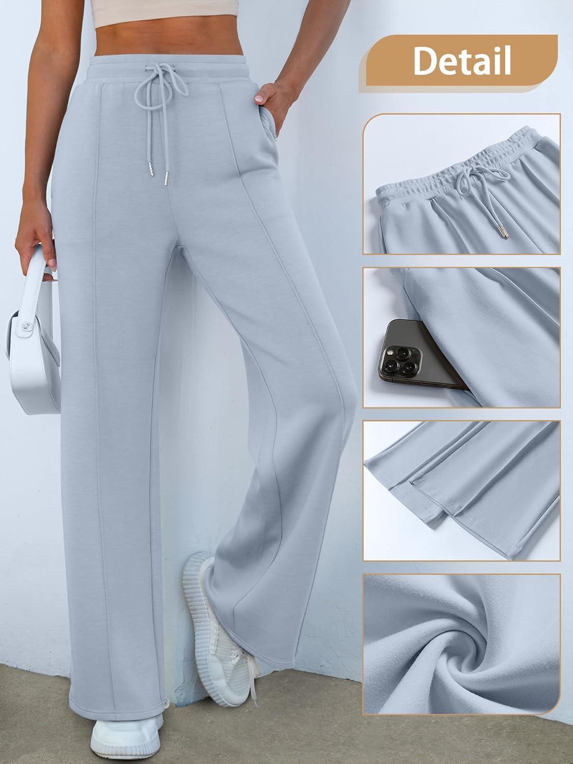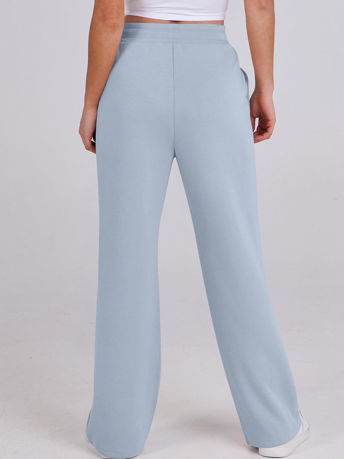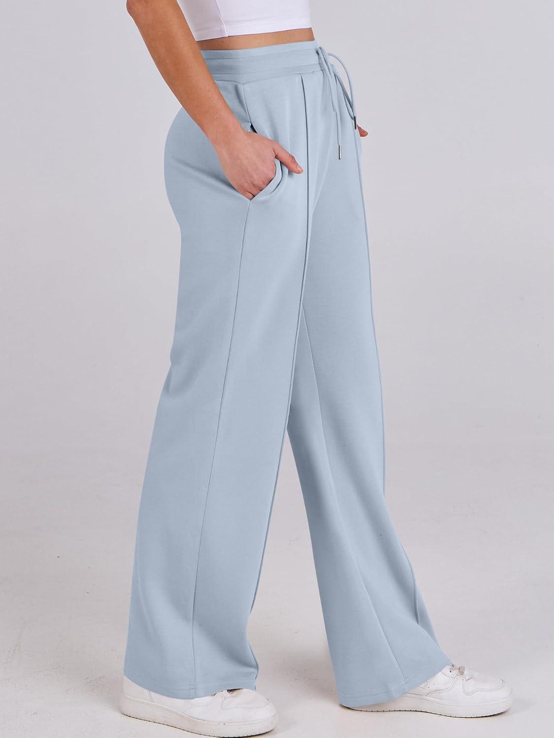 ANRABESS Women’s Wide Leg Sweatpants High Waist Baggy Flared Pants Drawstring Athletic Joggers Sweat Pants(Light Blue)