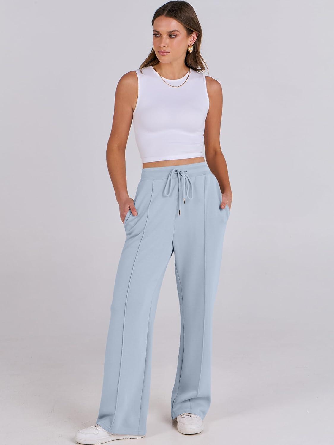 ANRABESS Women's Wide Leg Sweatpants High Waist Baggy Flared Pants Drawstring Athletic Joggers Sweat Pants(Light Blue)
