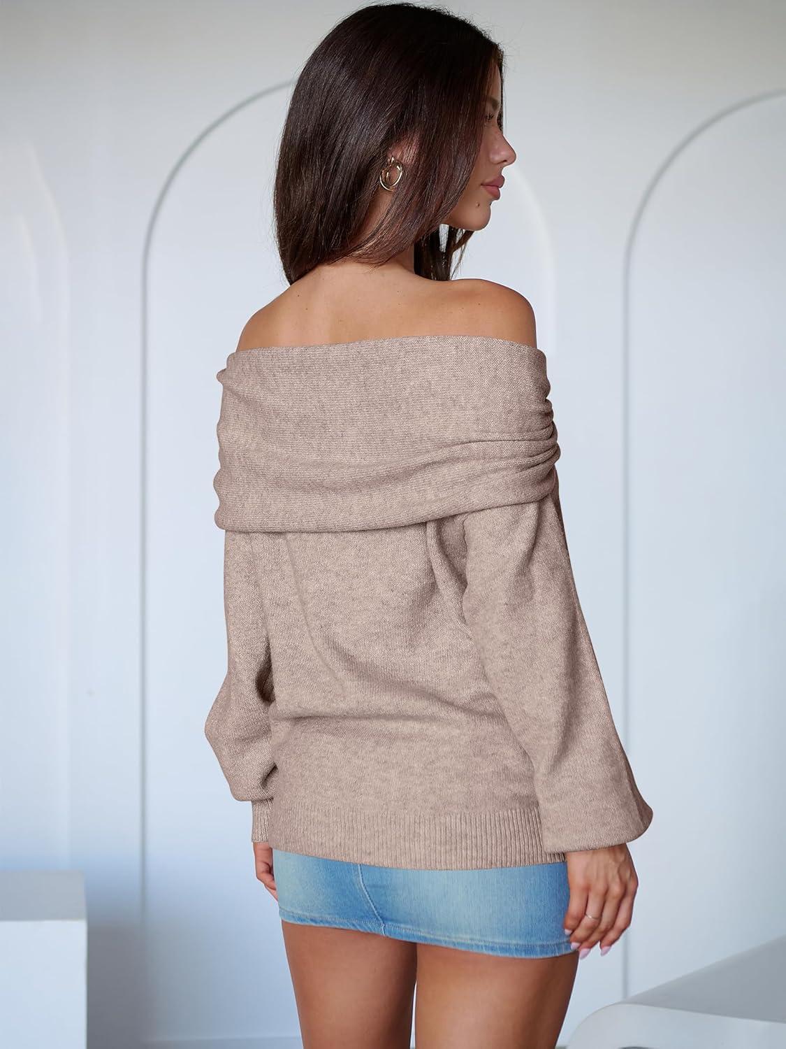 ANRABESS Womens Wool Blend Off The Shoulder Long Sleeve Soft Knit Sweaters 2025 Fall Outfits(Mocha)