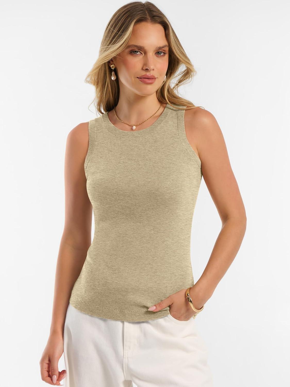 ANRABESS Womens Wool Blend Tank Tops Sweaters Sleeveless Soft Fitted Business Casual Sweater Shirts 2026 Summer Clothes(Almond)