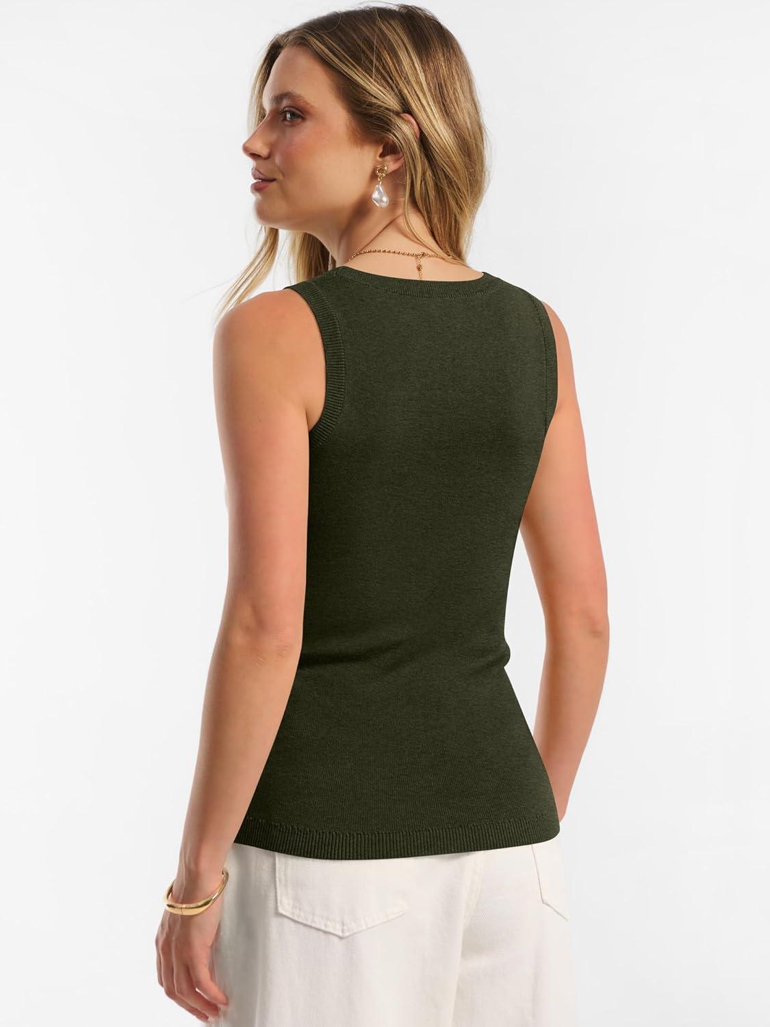 ANRABESS Womens Wool Blend Tank Tops Sweaters Sleeveless Soft Fitted Business Casual Sweater Shirts 2026 Summer Clothes(Army Green)