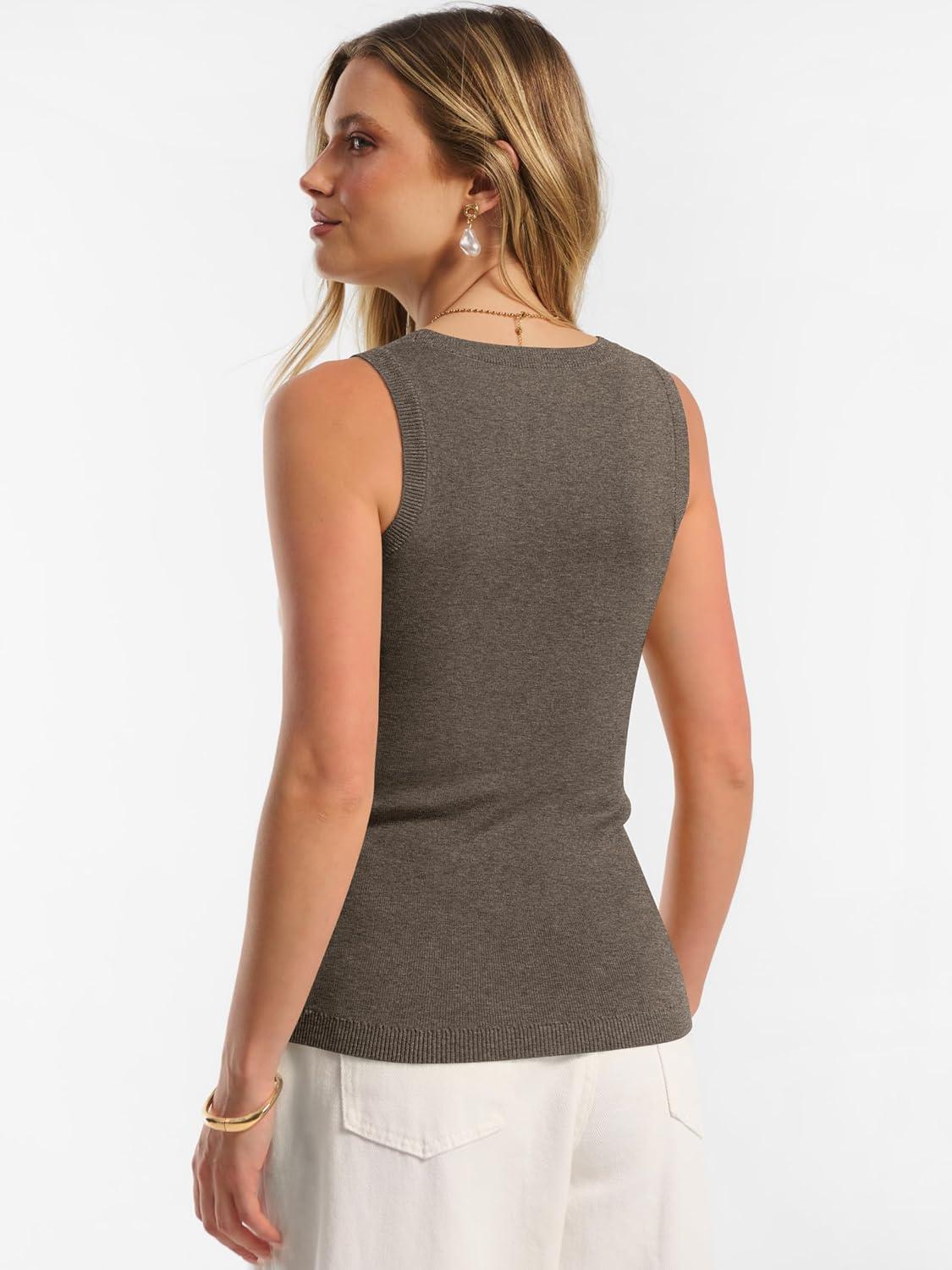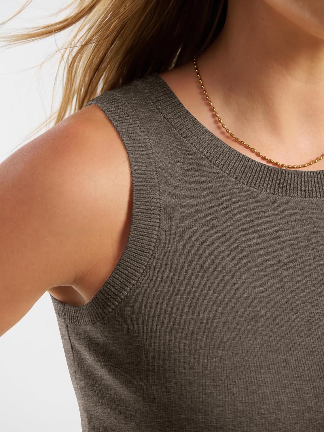 ANRABESS Womens Wool Blend Tank Tops Sweaters Sleeveless Soft Fitted Business Casual Sweater Shirts 2026 Summer Clothes(Chocolate Brown)