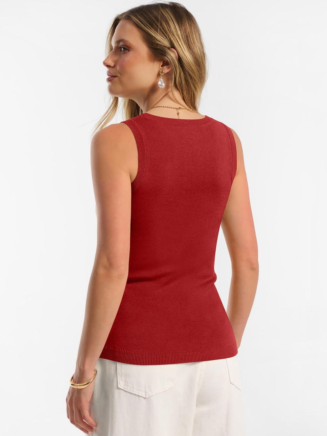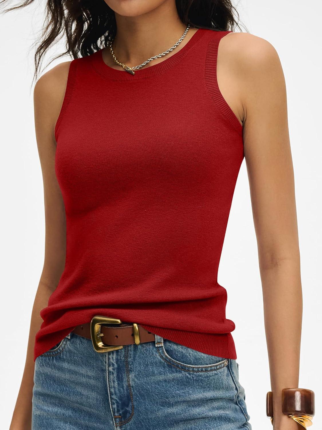 ANRABESS Womens Wool Blend Tank Tops Sweaters Sleeveless Soft Fitted Business Casual Sweater Shirts 2026 Summer Clothes(Red)