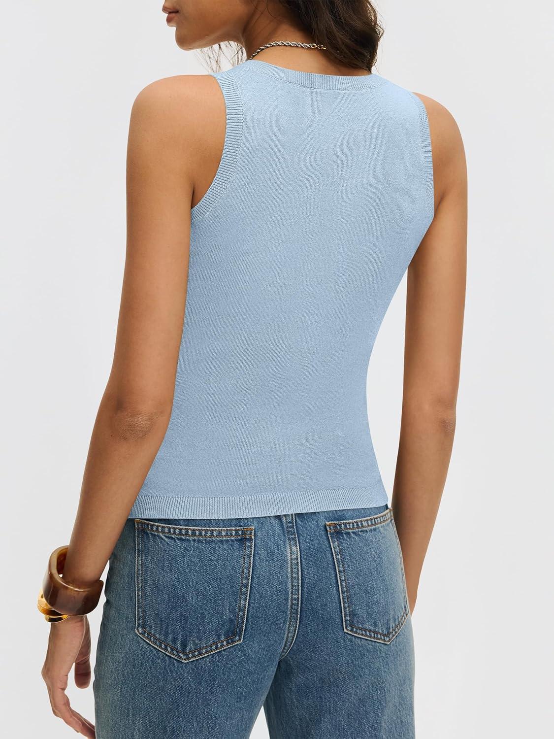 ANRABESS Womens Wool Blend Tank Tops V Neck Sleeveless Sweater Business Casual Work Knit Shirts Slim Fit 2026 Summer Outfits(Light Blue)