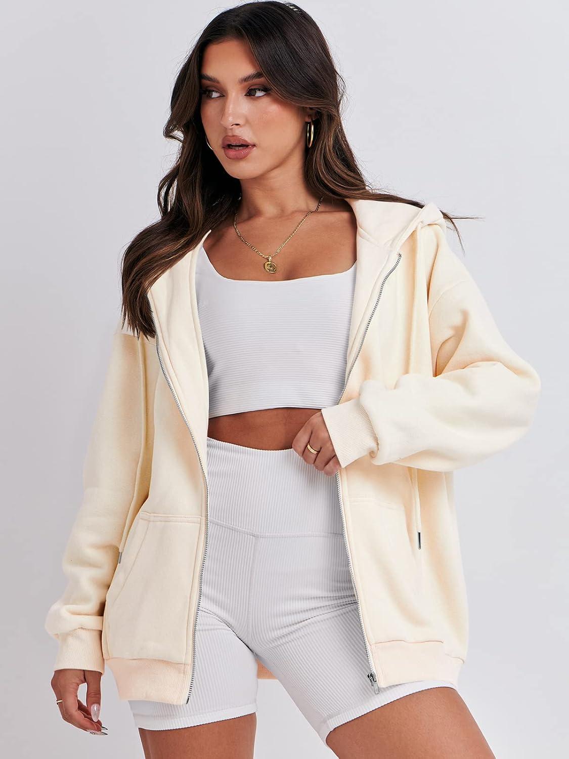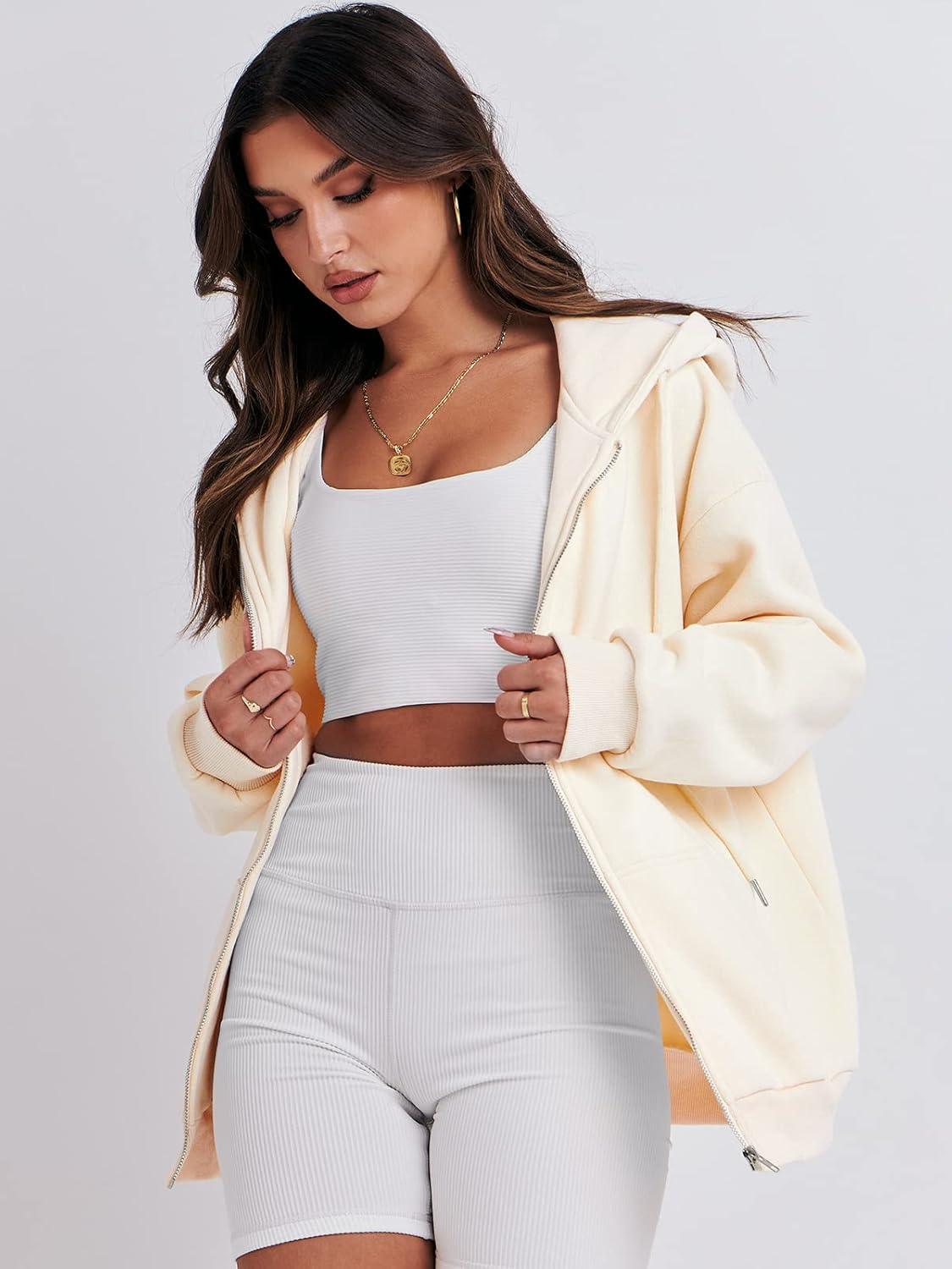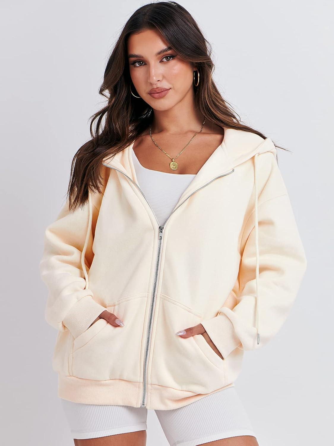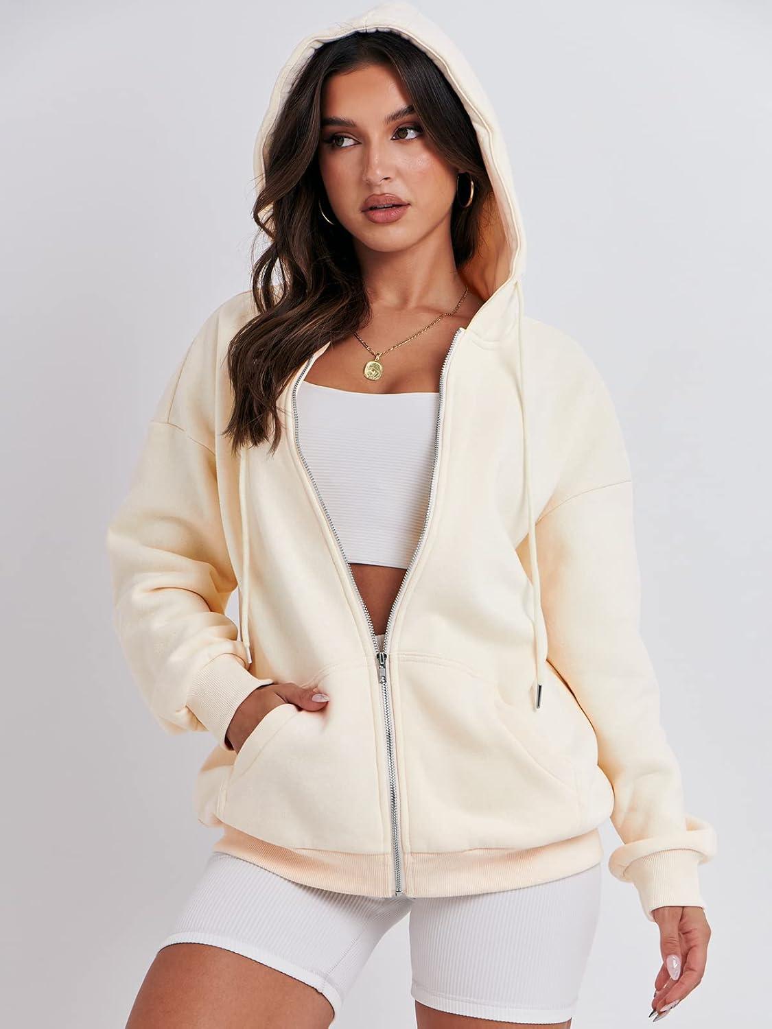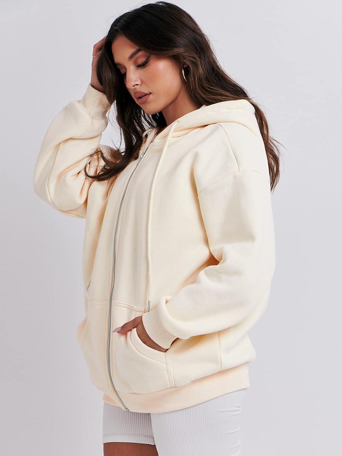 ANRABESS Womens Zip Up Hoodies Long Sleeve Oversized Sweatshirts Fleece Y2K Jacket Pockets 2025 Fall Outfits Fashion Clothes(Apricot)