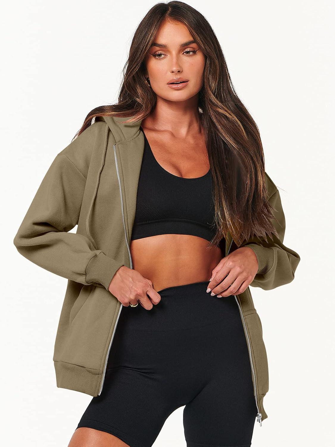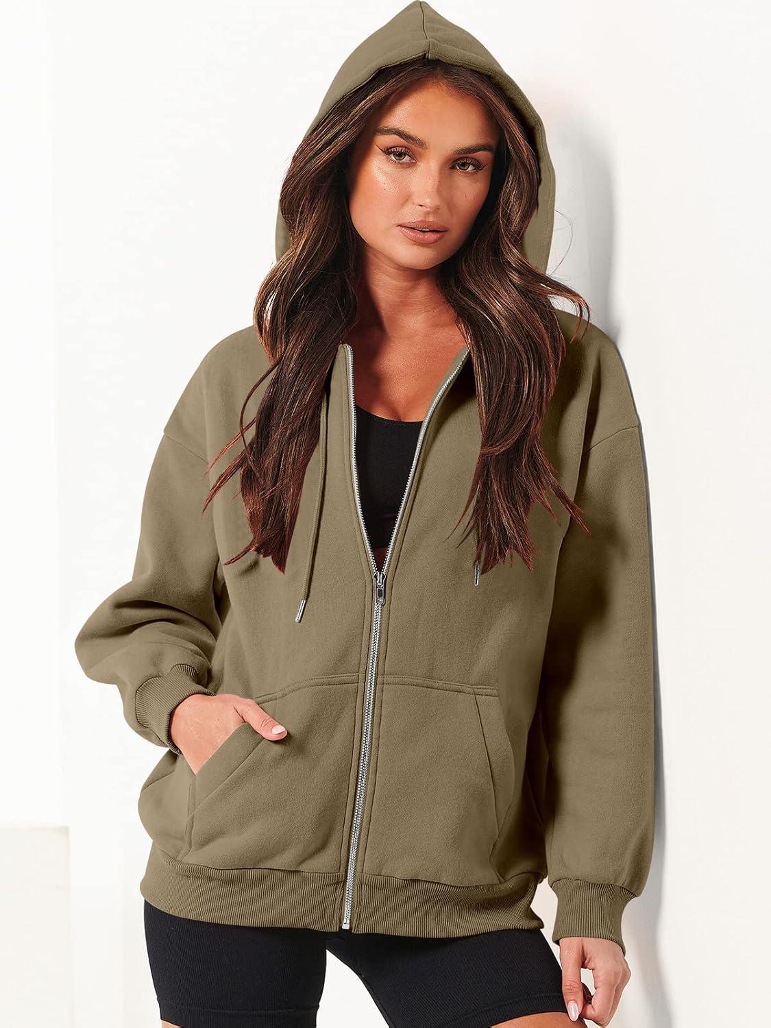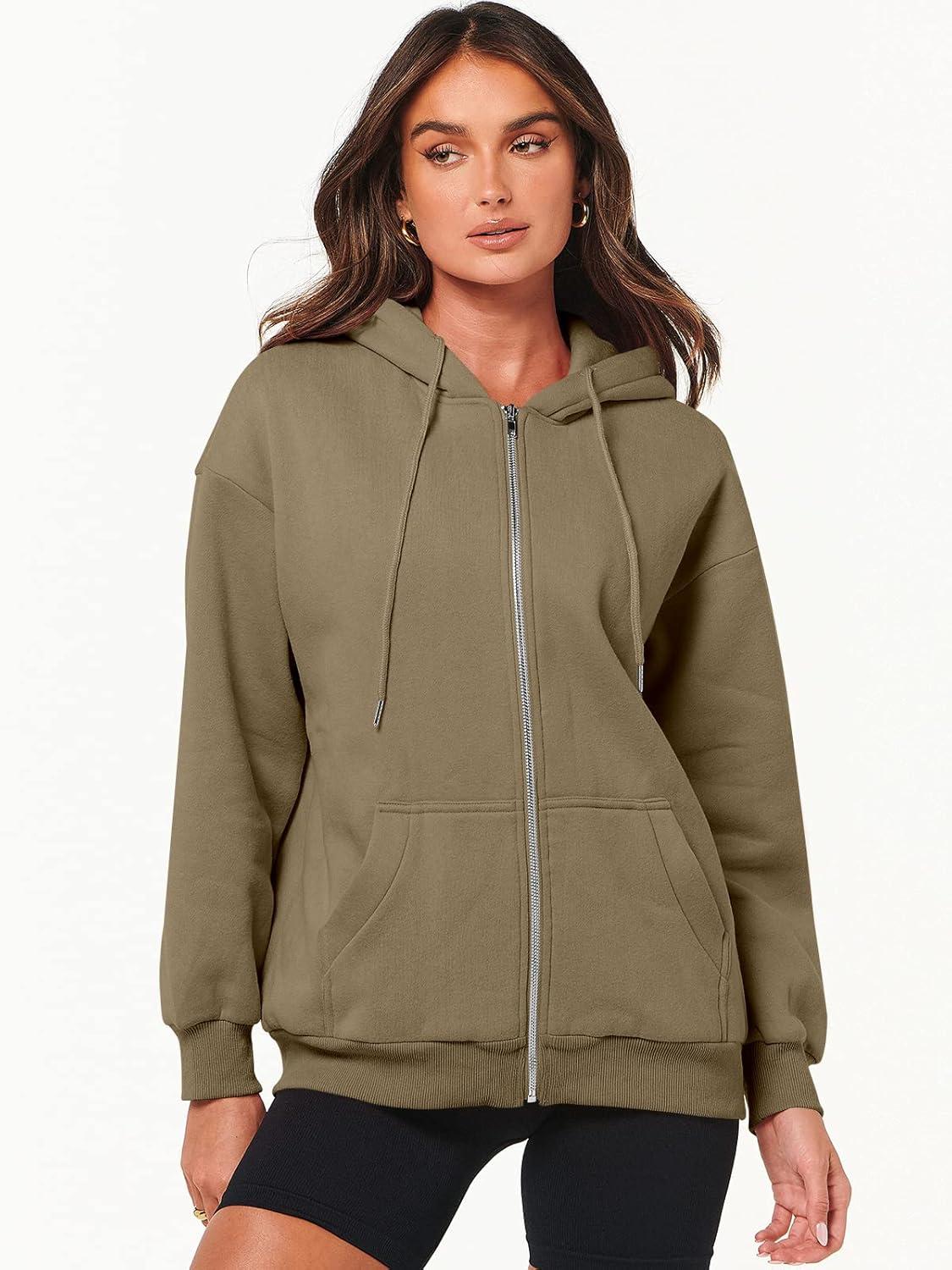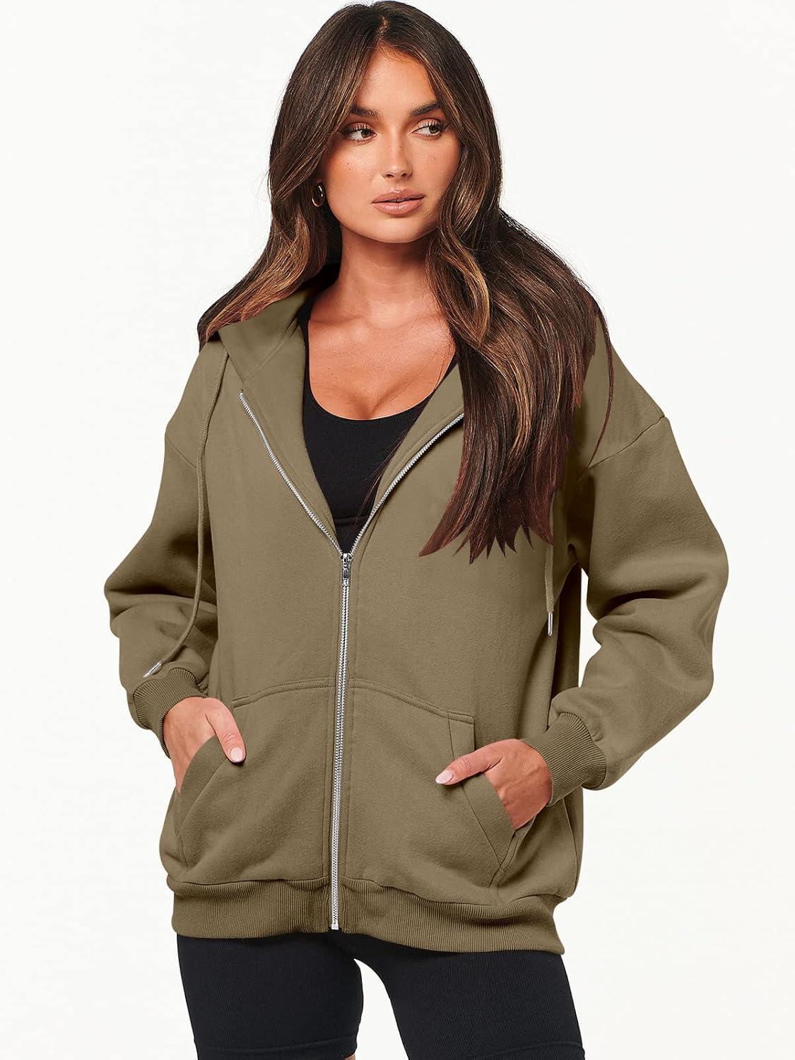 ANRABESS Womens Zip Up Hoodies Long Sleeve Oversized Sweatshirts Fleece Y2K Jacket Pockets 2025 Fall Outfits Fashion Clothes(Brown)