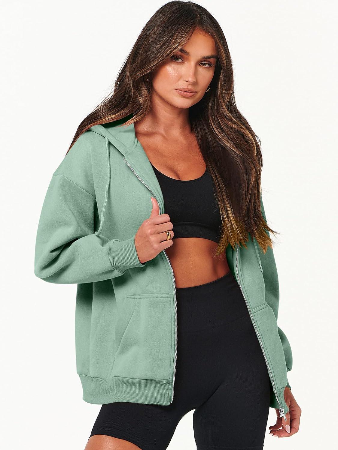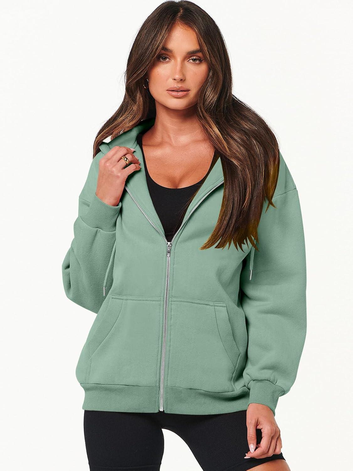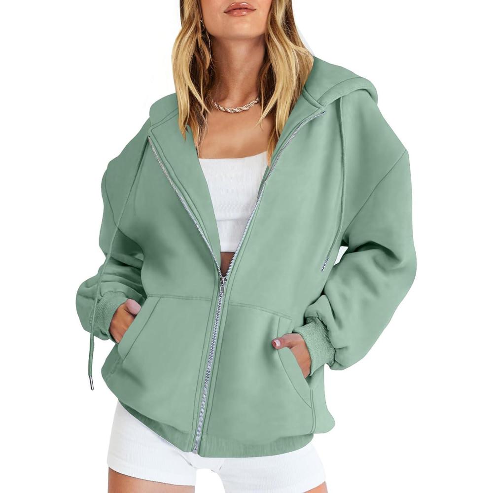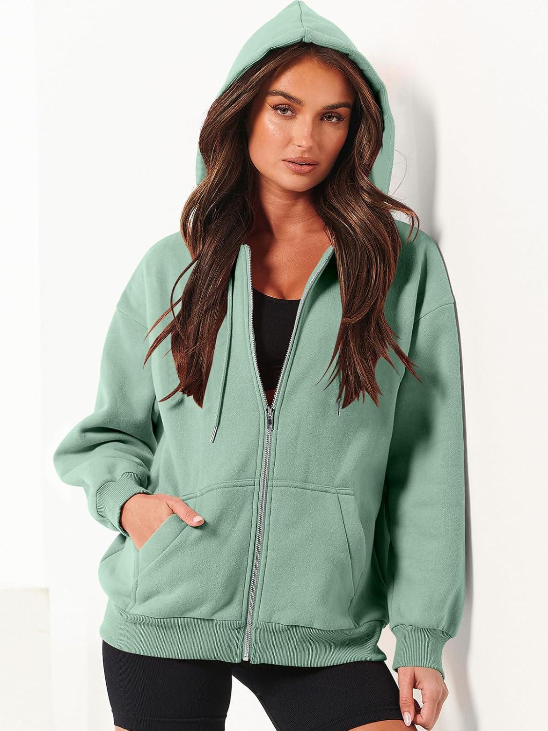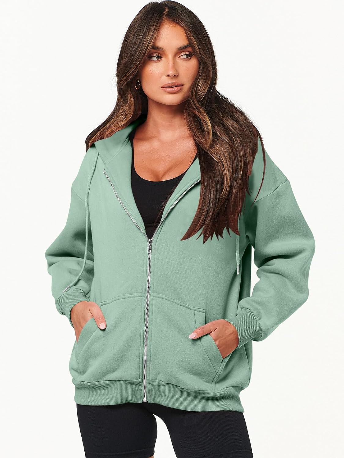 ANRABESS Womens Zip Up Hoodies Long Sleeve Oversized Sweatshirts Fleece Y2K Jacket Pockets 2025 Fall Outfits Fashion Clothes(Mint Green)