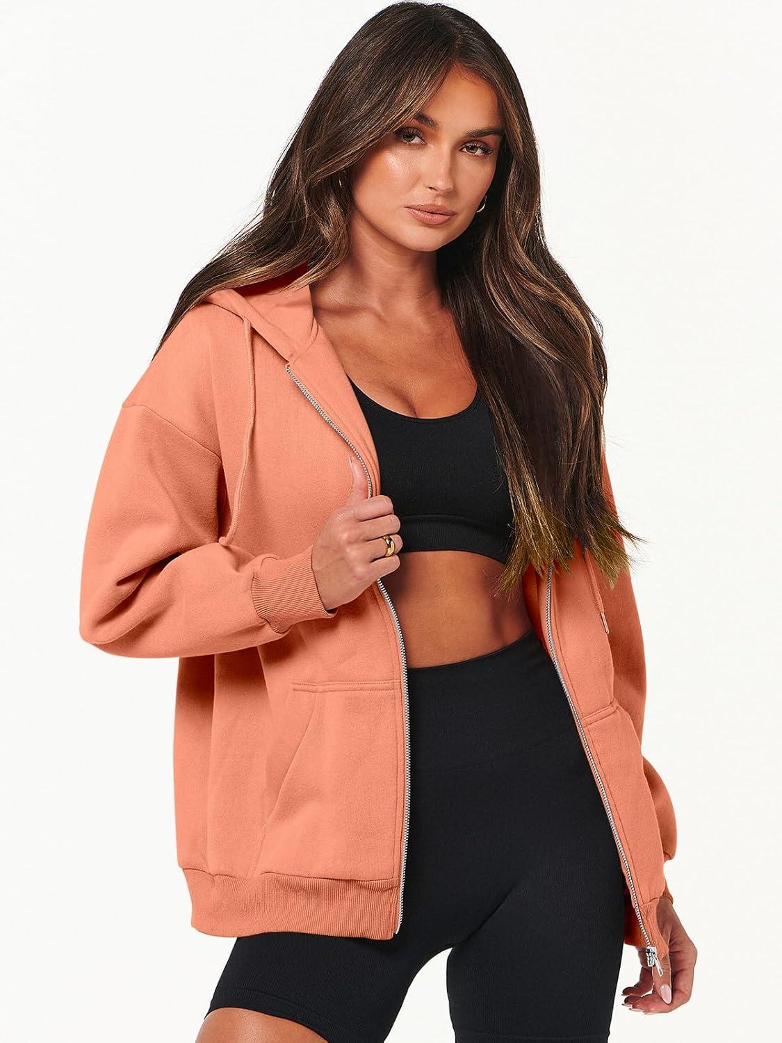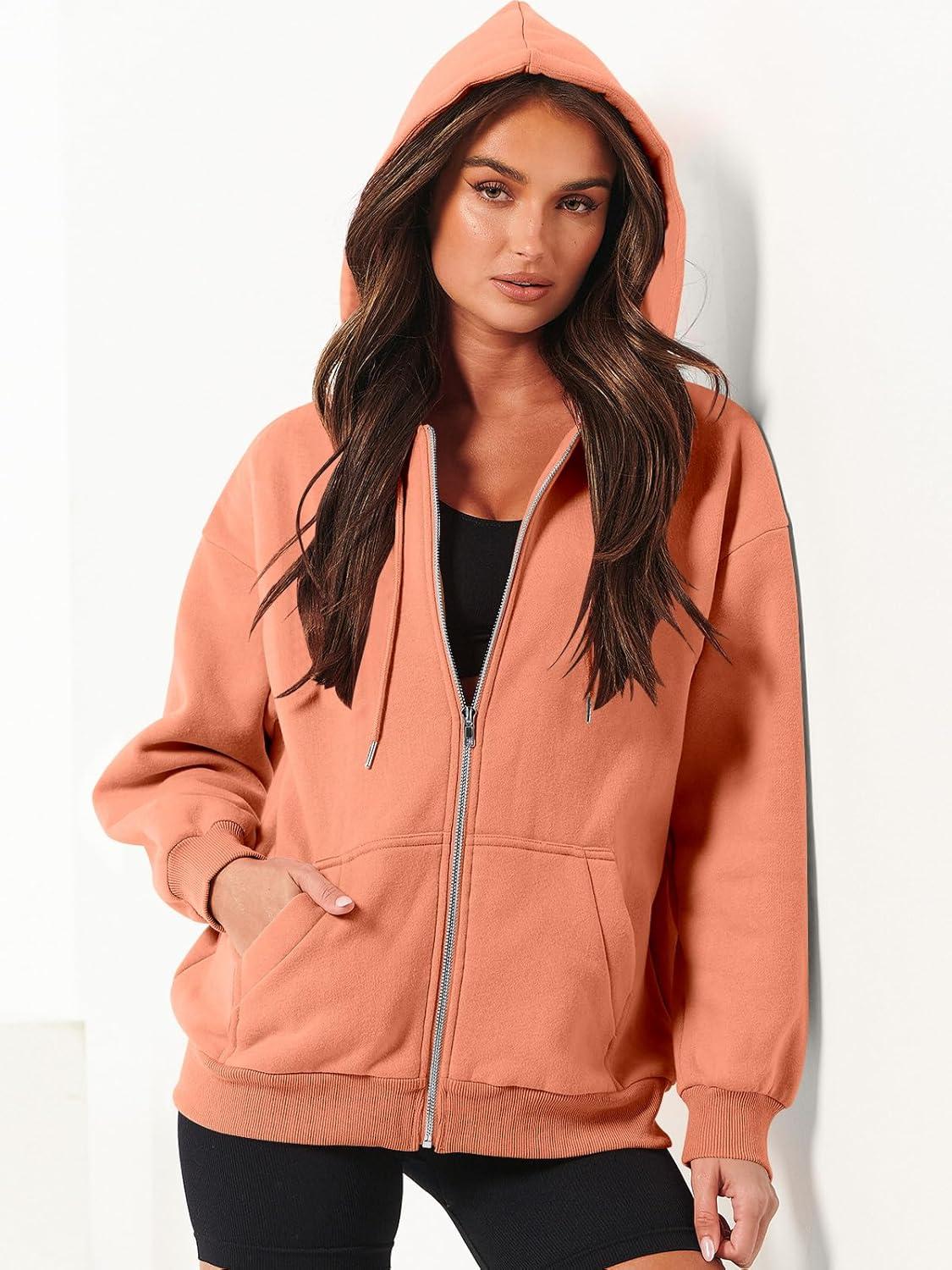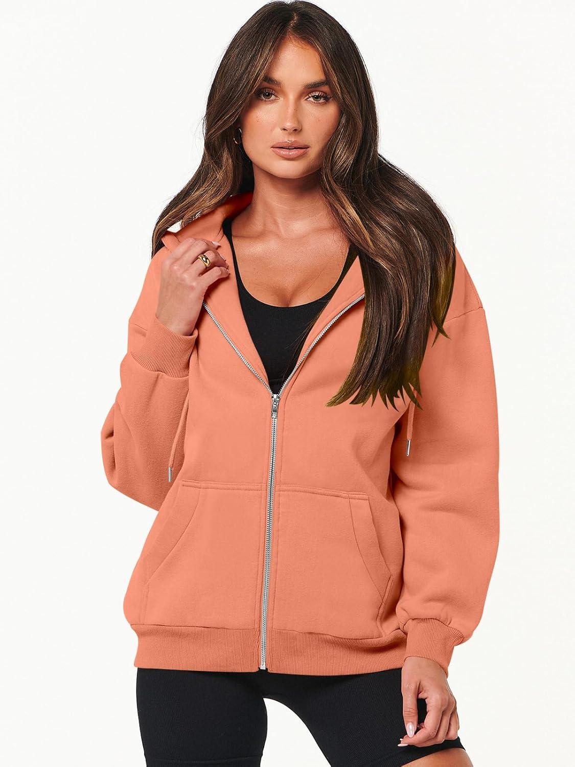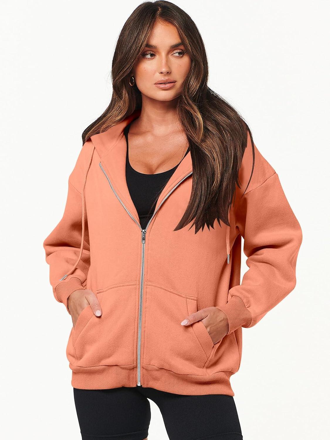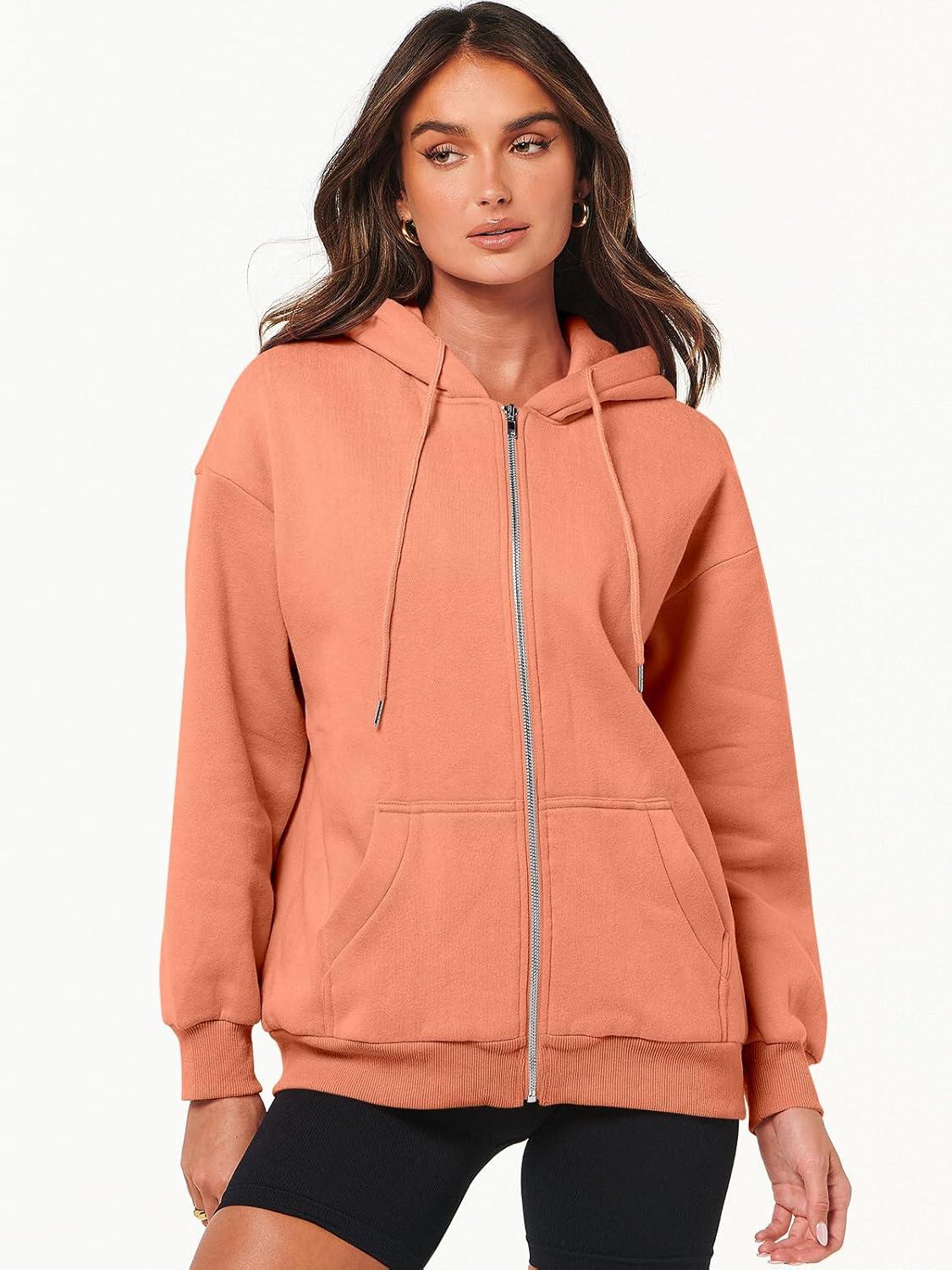 ANRABESS Womens Zip Up Hoodies Long Sleeve Oversized Sweatshirts Fleece Y2K Jacket Pockets 2025 Fall Outfits Fashion Clothes(Orange)