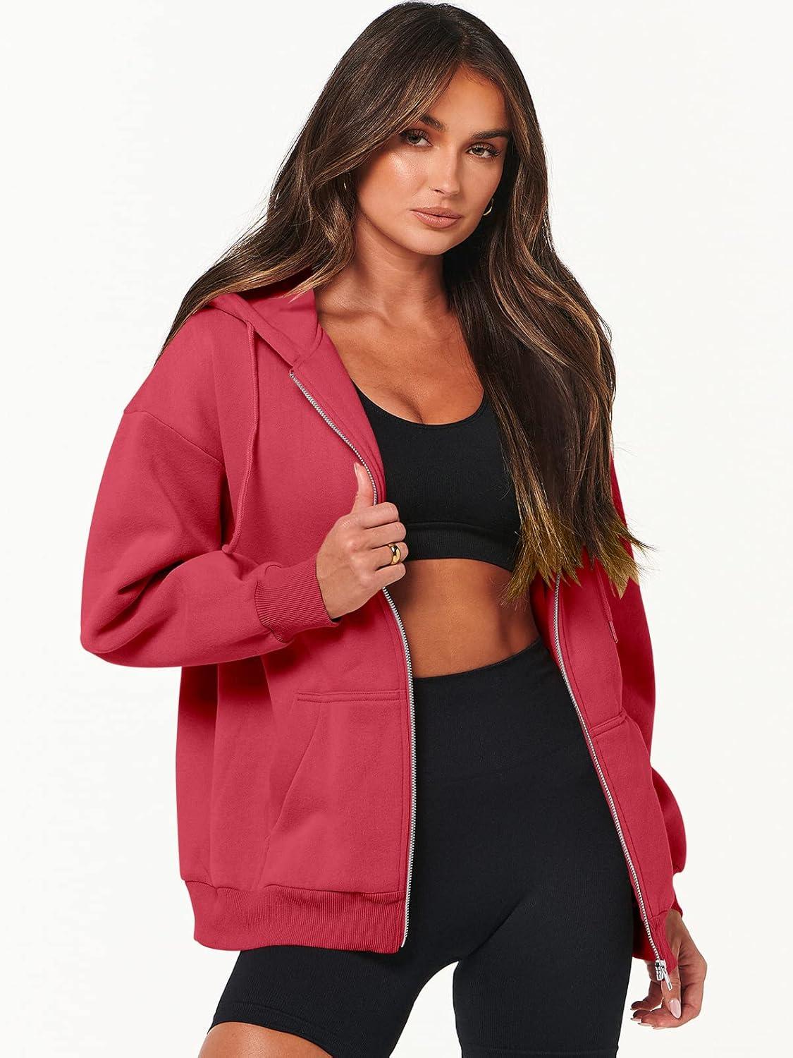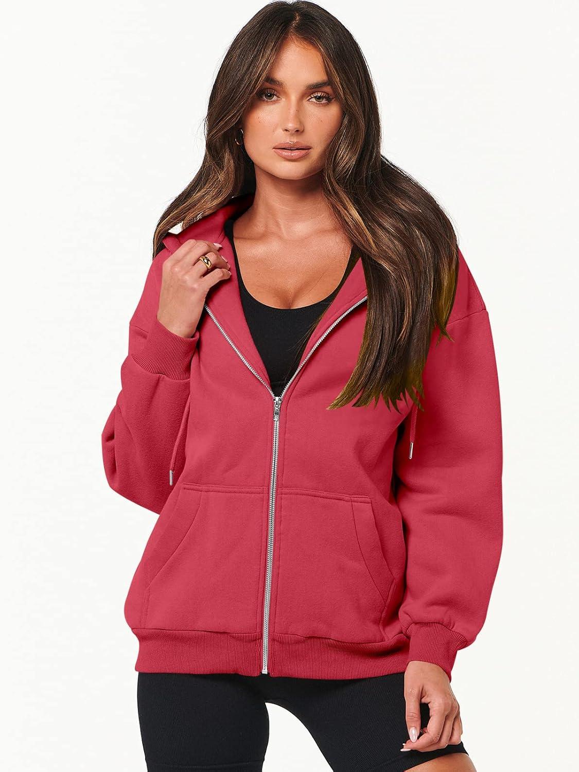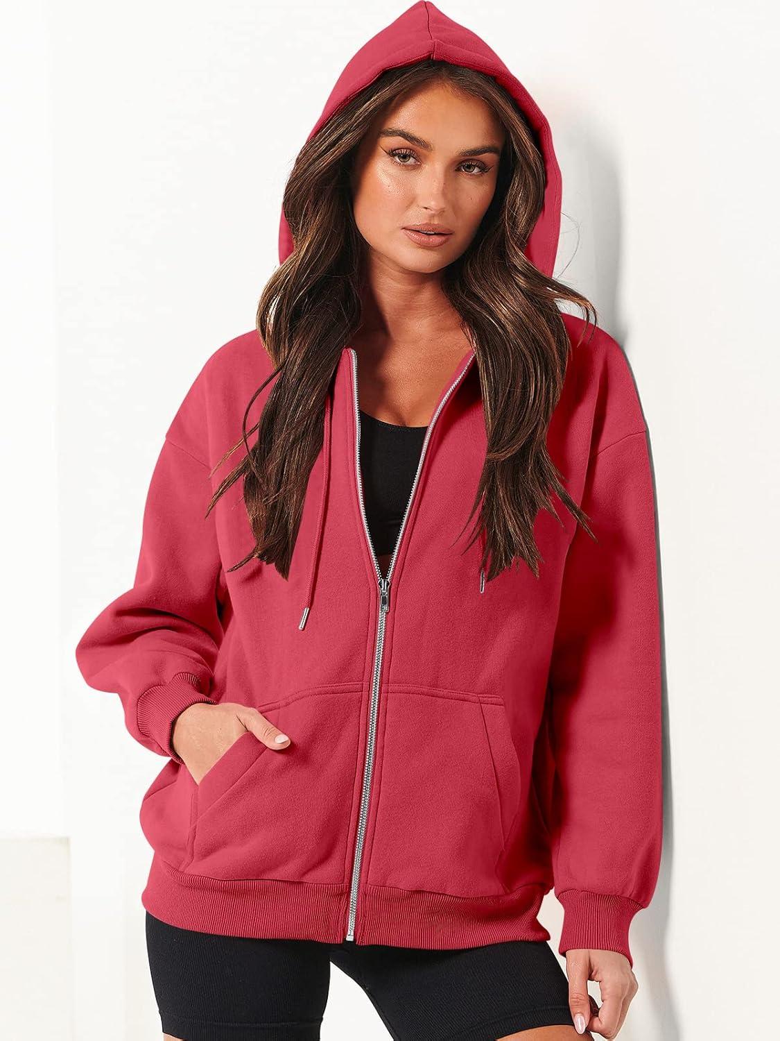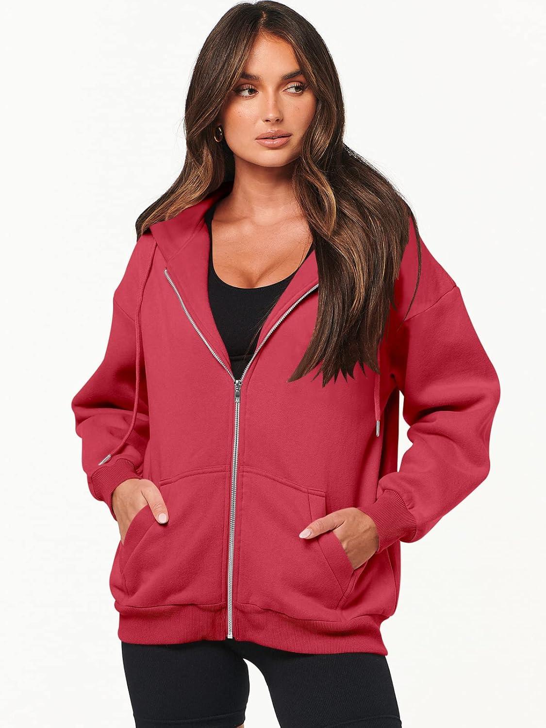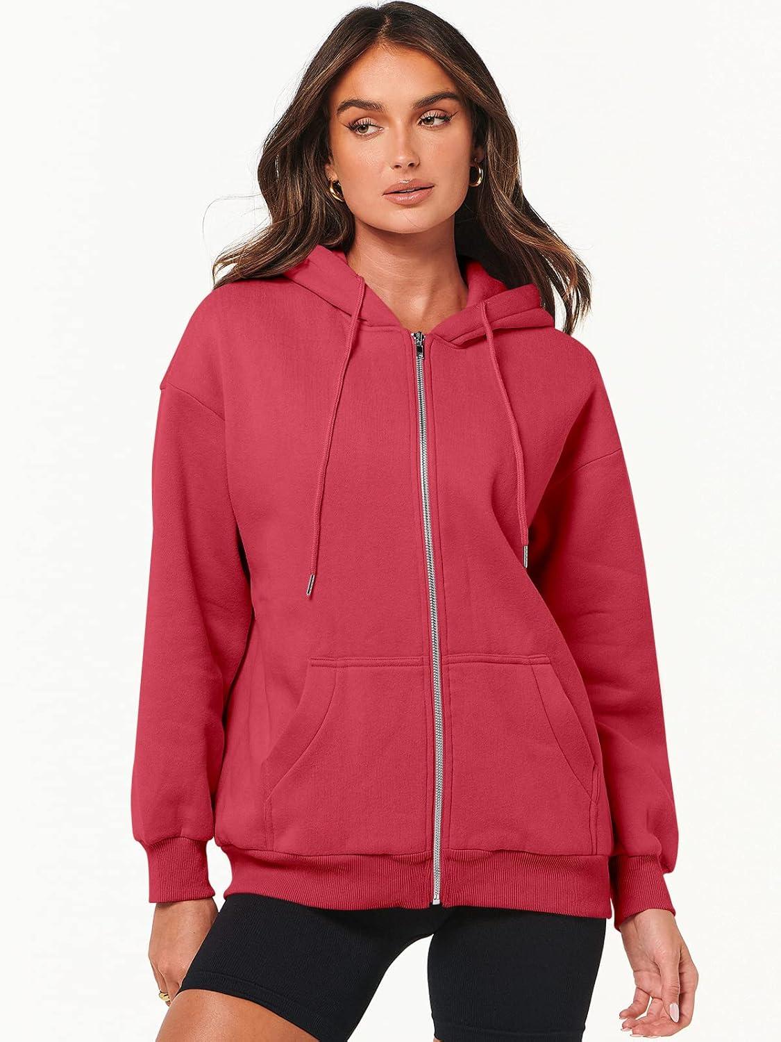 ANRABESS Womens Zip Up Hoodies Long Sleeve Oversized Sweatshirts Fleece Y2K Jacket Pockets 2025 Fall Outfits Fashion Clothes(Red)