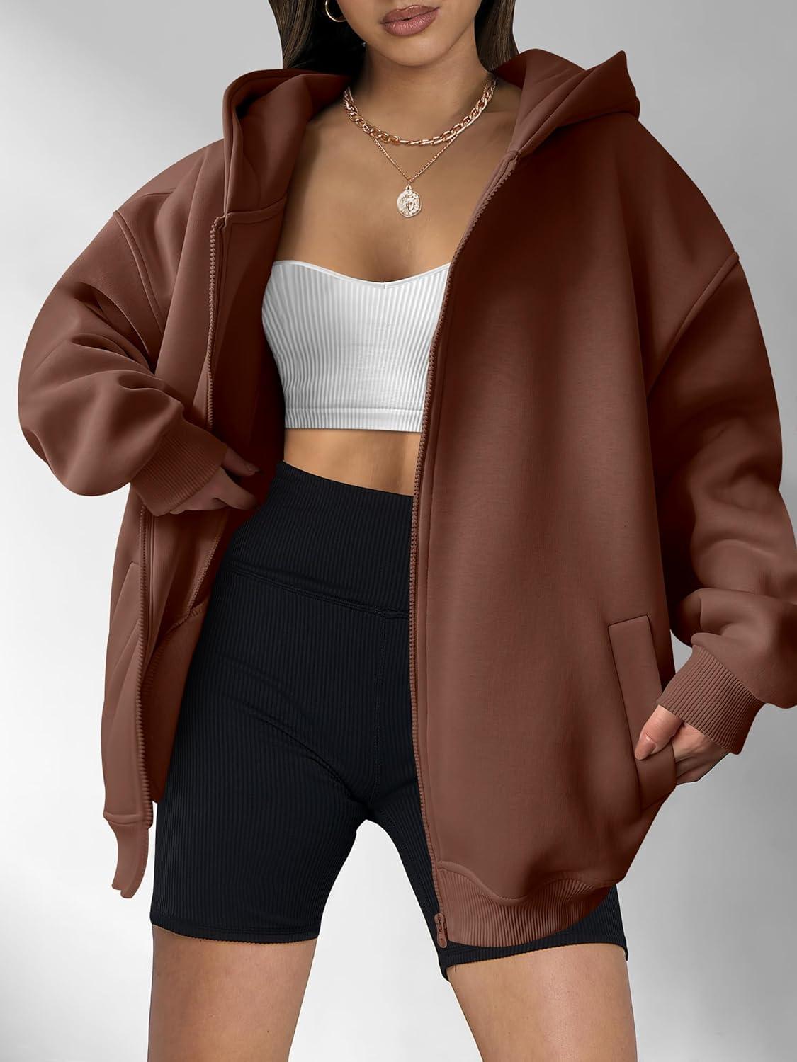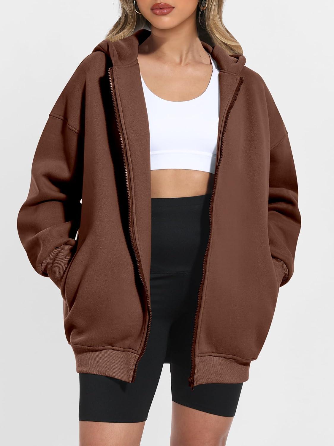 imageANRABESS Womens Zip Up Hoodies Oversized Sweatshirt Long Sleeve Fleece Jackets Coat Workout Y2K Outfits 2025 Fall TrendyBrown