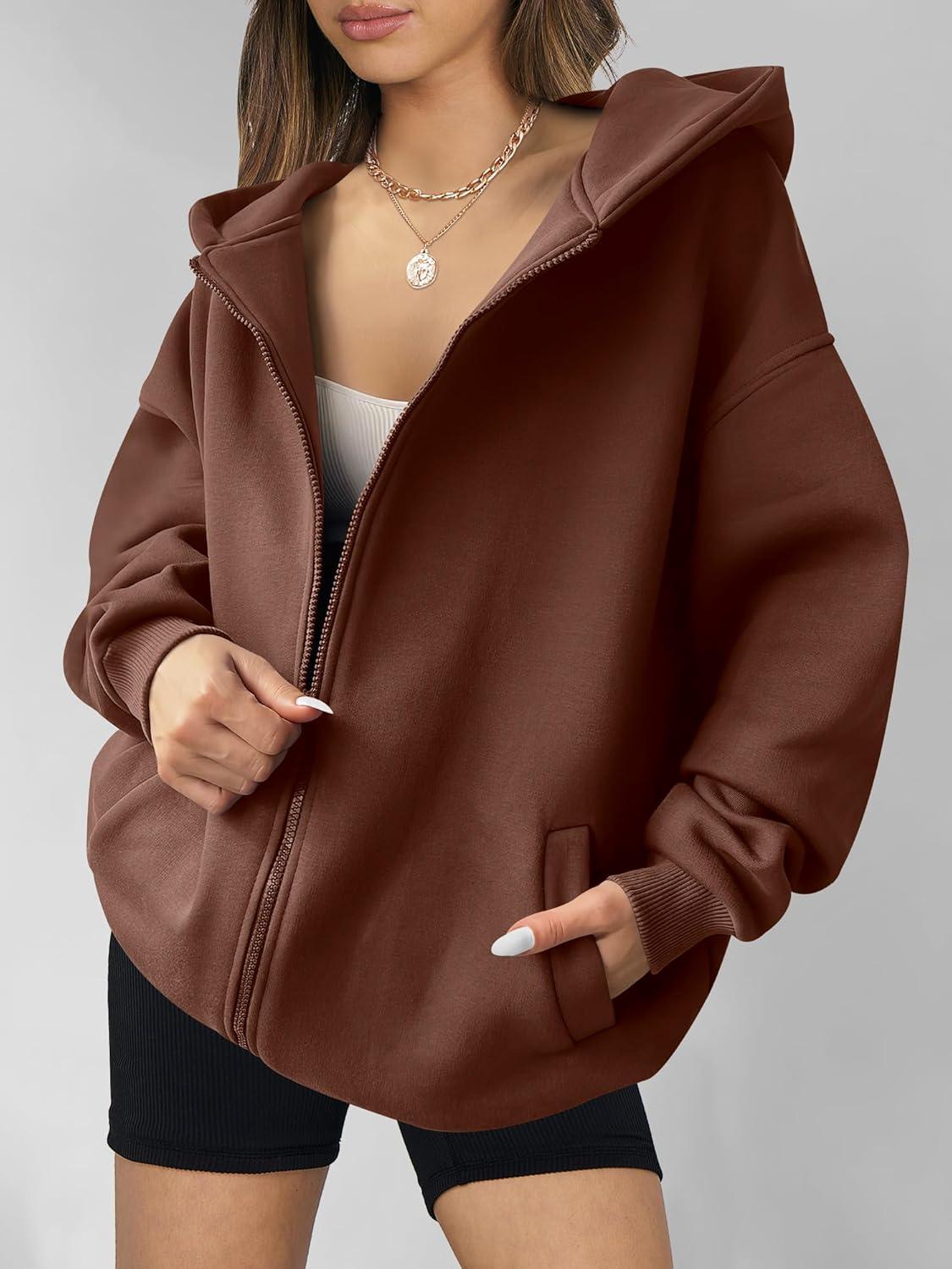 ANRABESS Womens Zip Up Hoodies Oversized Sweatshirt Long Sleeve Fleece Jackets Coat Workout Y2K Outfits 2025 Fall Trendy(Brown)