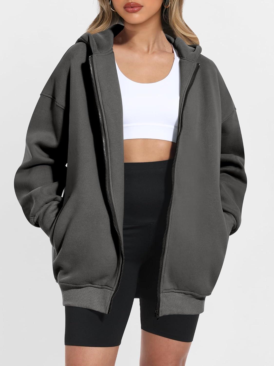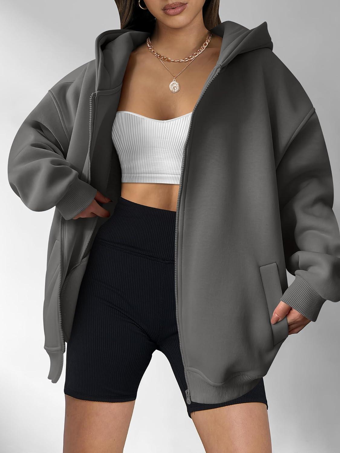 imageANRABESS Womens Zip Up Hoodies Oversized Sweatshirt Long Sleeve Fleece Jackets Coat Workout Y2K Outfits 2025 Fall TrendyDeep Grey