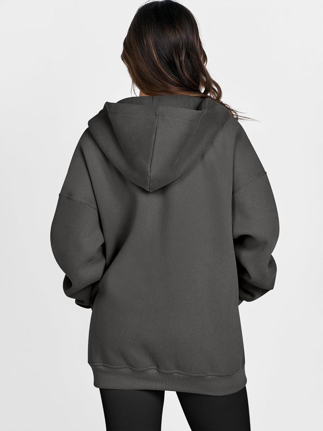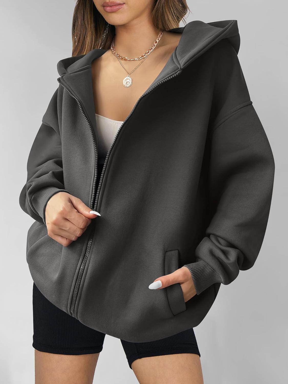ANRABESS Womens Zip Up Hoodies Oversized Sweatshirt Long Sleeve Fleece Jackets Coat Workout Y2K Outfits 2025 Fall Trendy(Deep Grey)
