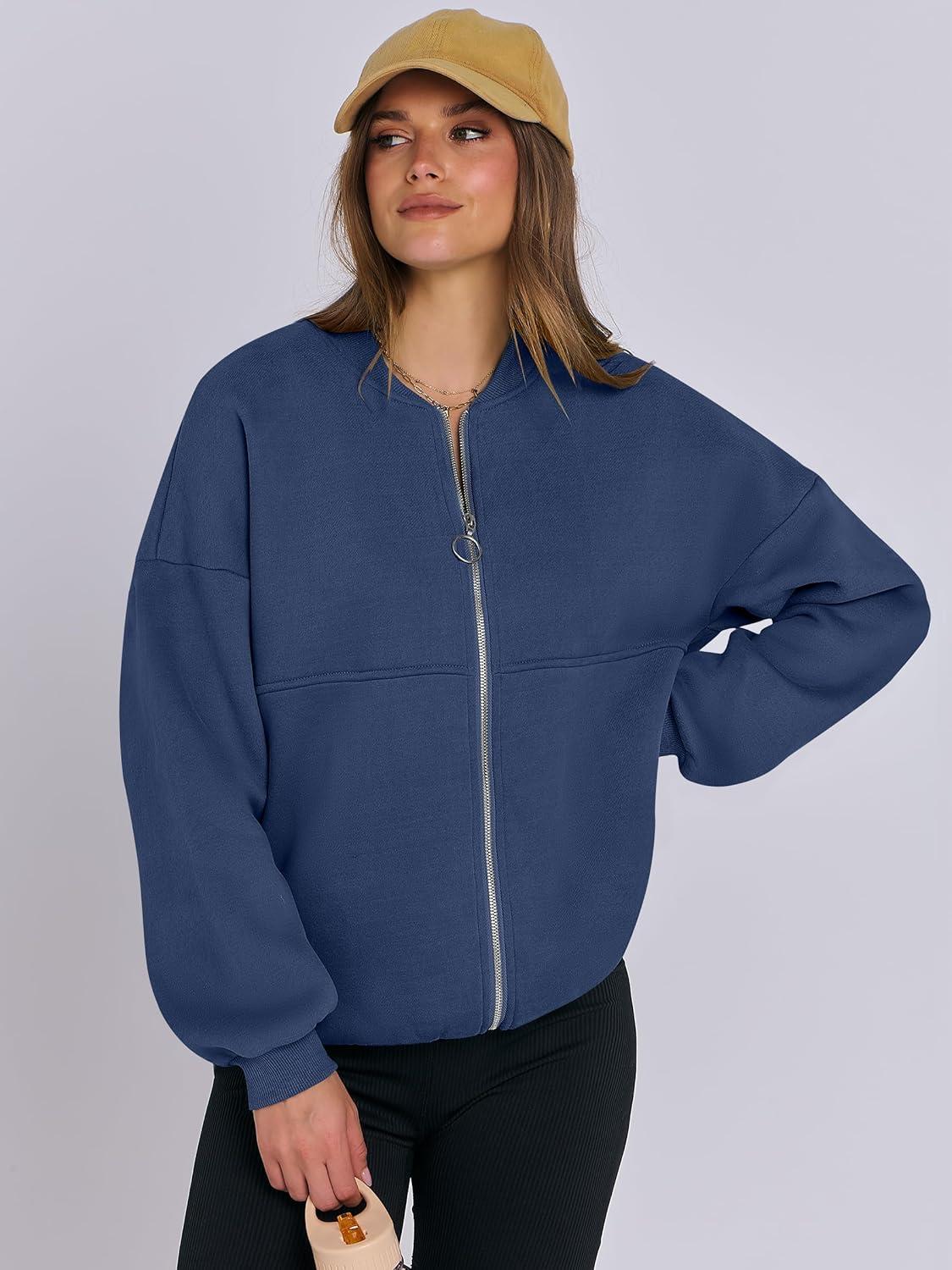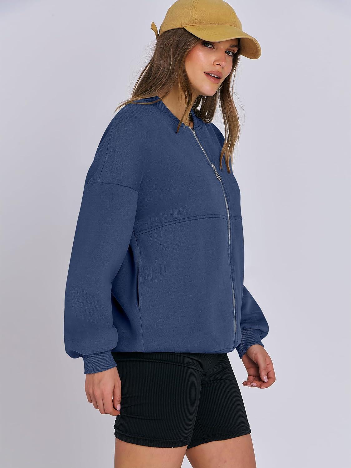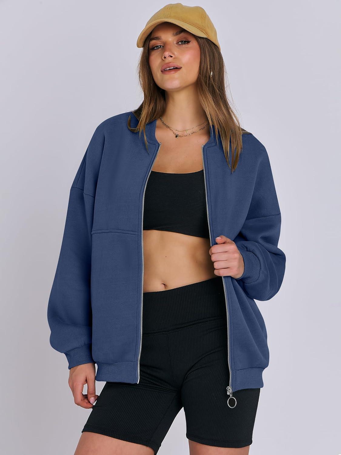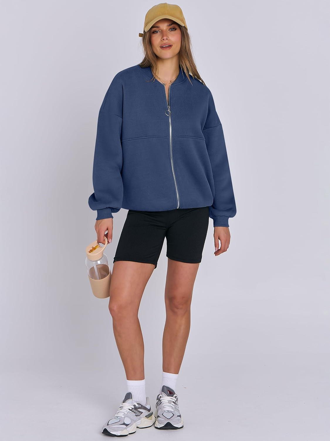 ANRABESS Women's Zip up Oversized Sweatshirts Fleece jacket Coat Long Sleeve Casual Hoodie 2025 Fall Teen Girl Top Clothes(Deep Blue)