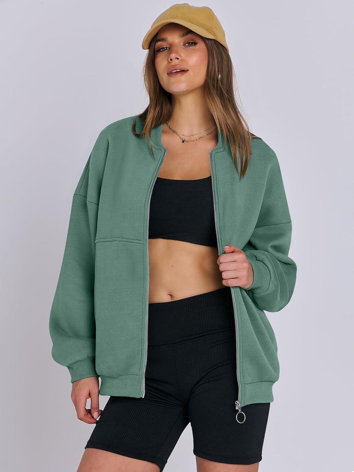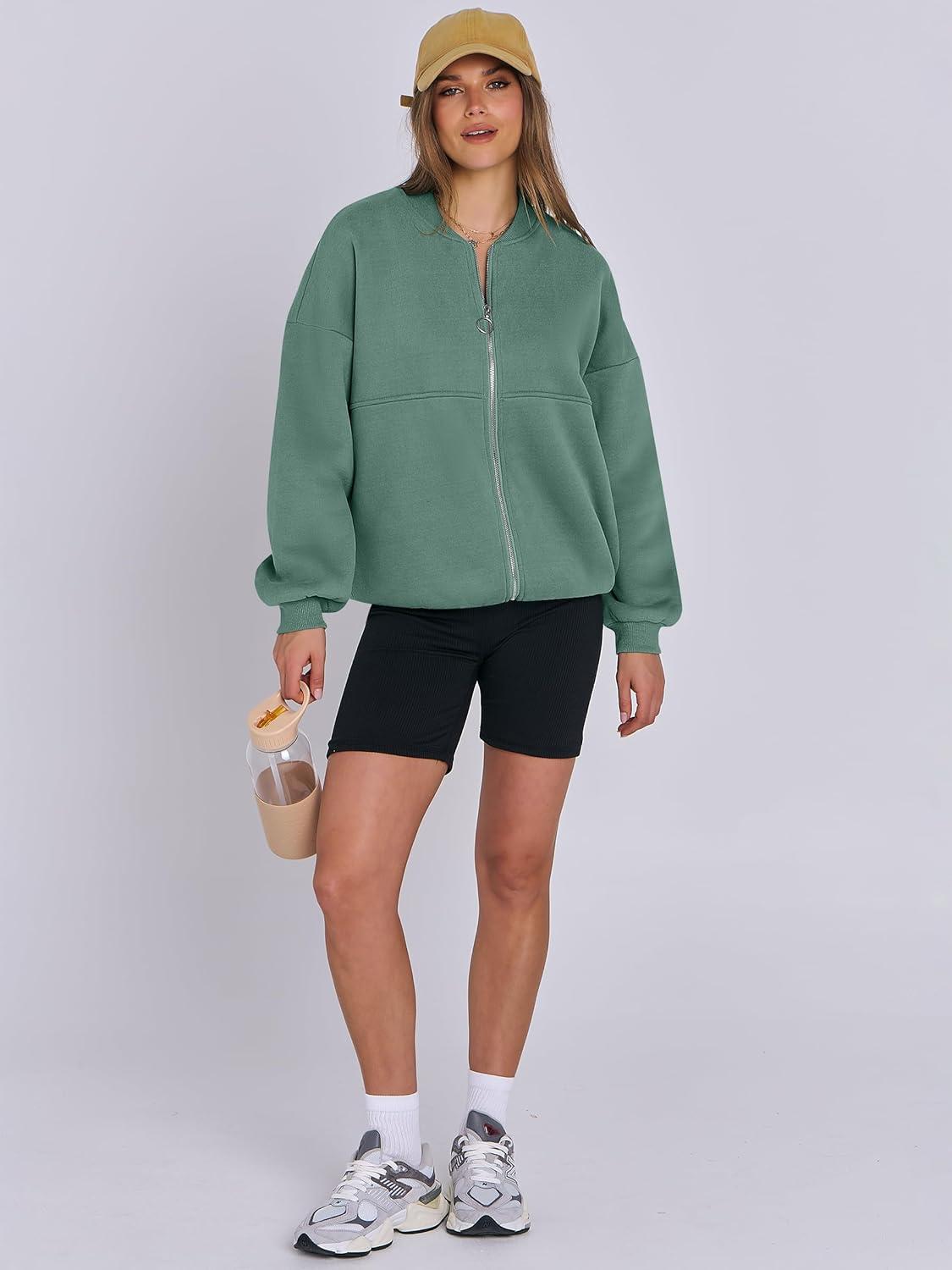 ANRABESS Women's Zip up Oversized Sweatshirts Fleece jacket Coat Long Sleeve Casual Hoodie 2025 Fall Teen Girl Top Clothes(Lake Green)