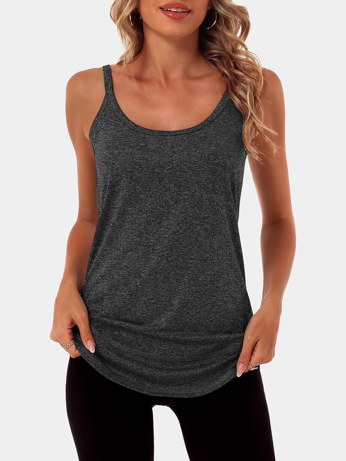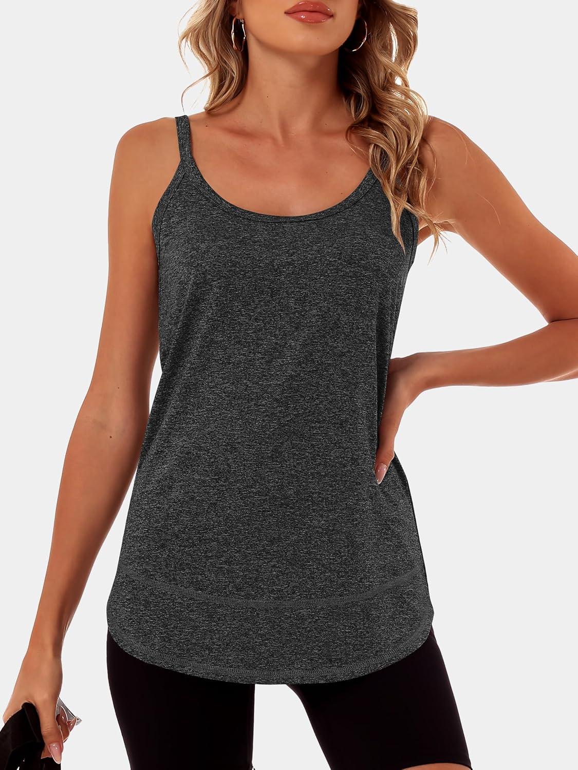 ANRABESS Workout Tank Tops for Women Spaghetti Strap Camisole Shirts Summer 2026 Loose Fit Athletic Running Yoga Gym Clothes(Black)