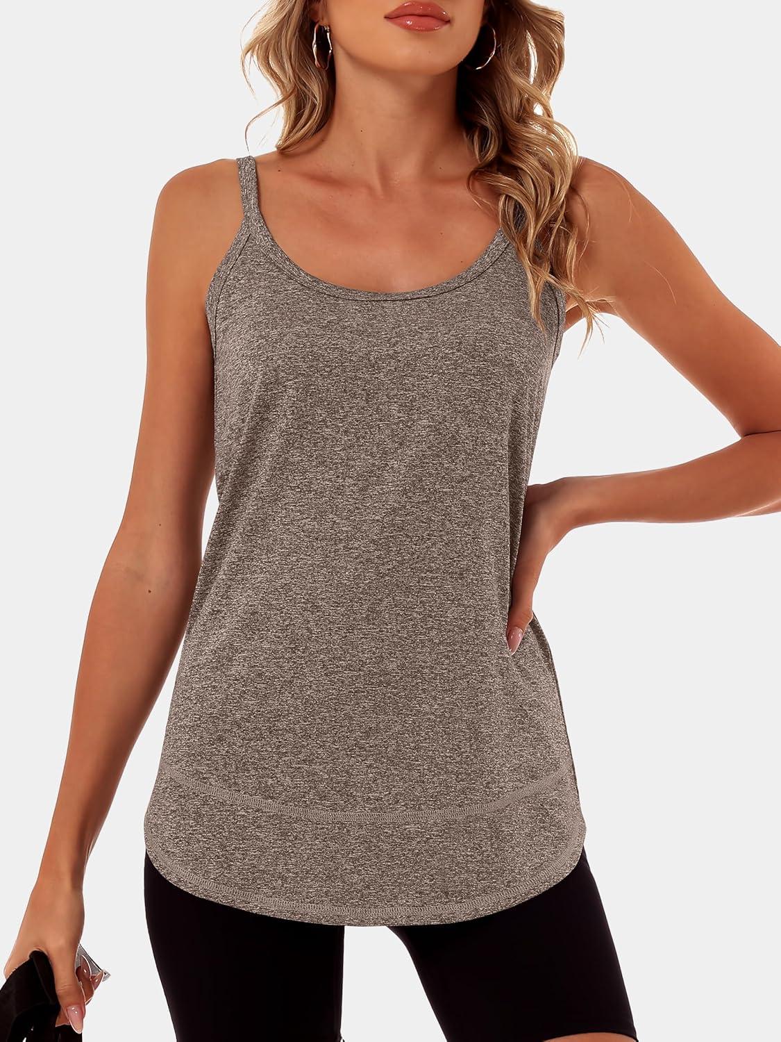 imageANRABESS Workout Tank Tops for Women Spaghetti Strap Camisole Shirts Summer 2026 Loose Fit Athletic Running Yoga Gym ClothesLight Brown