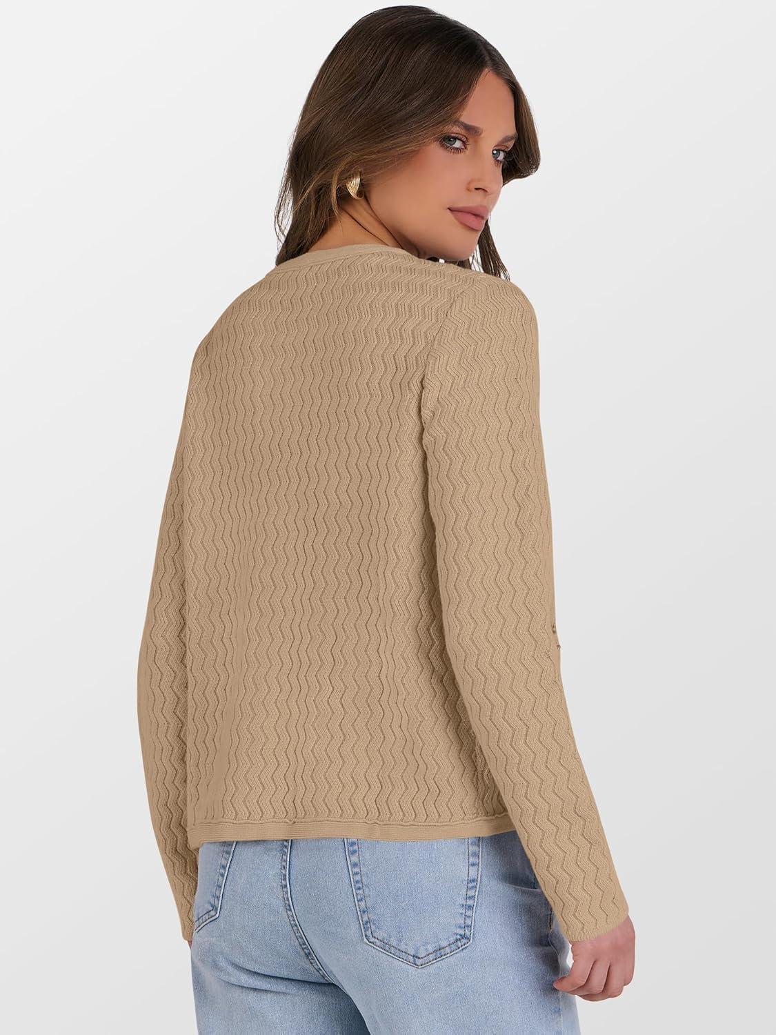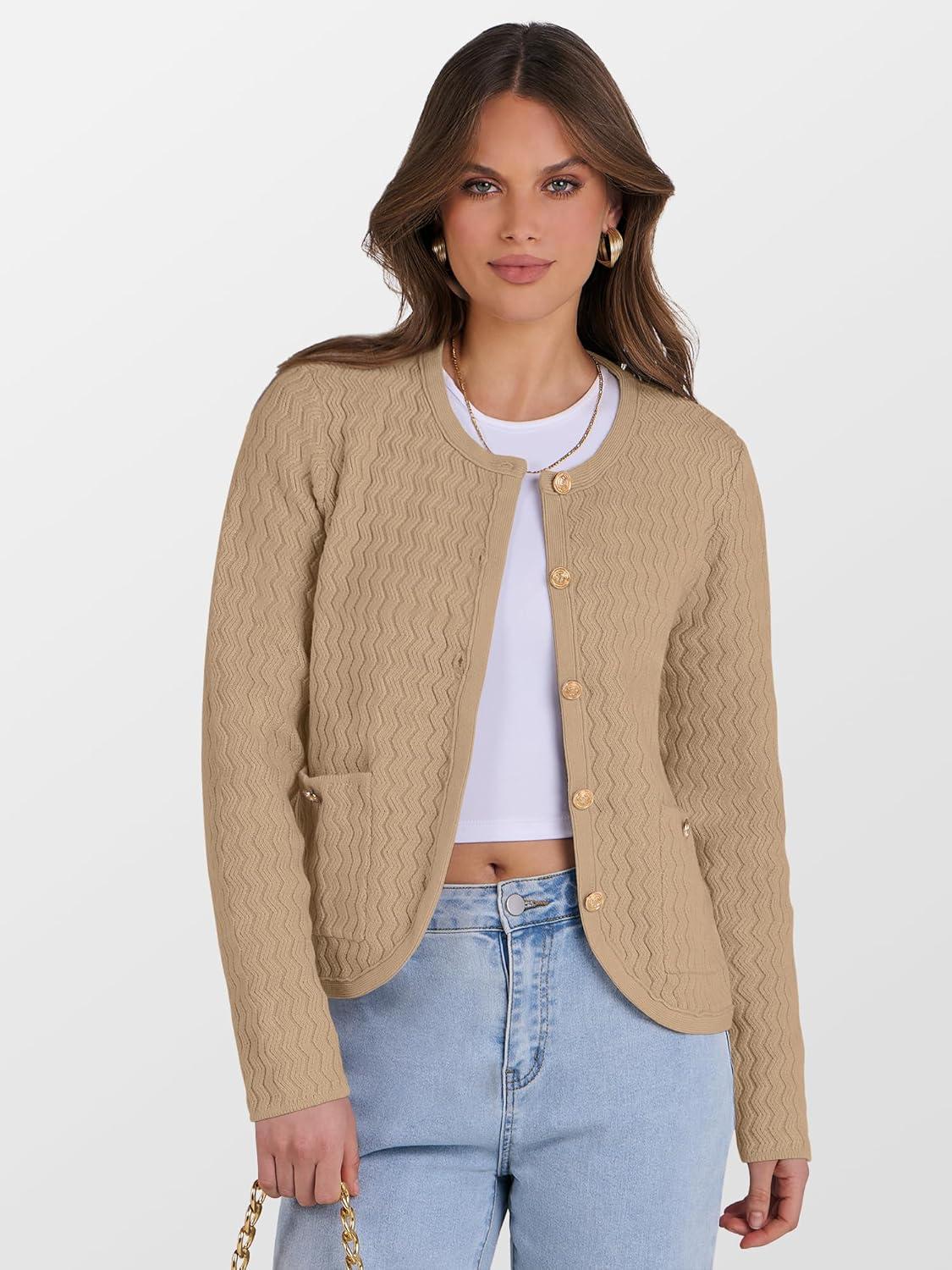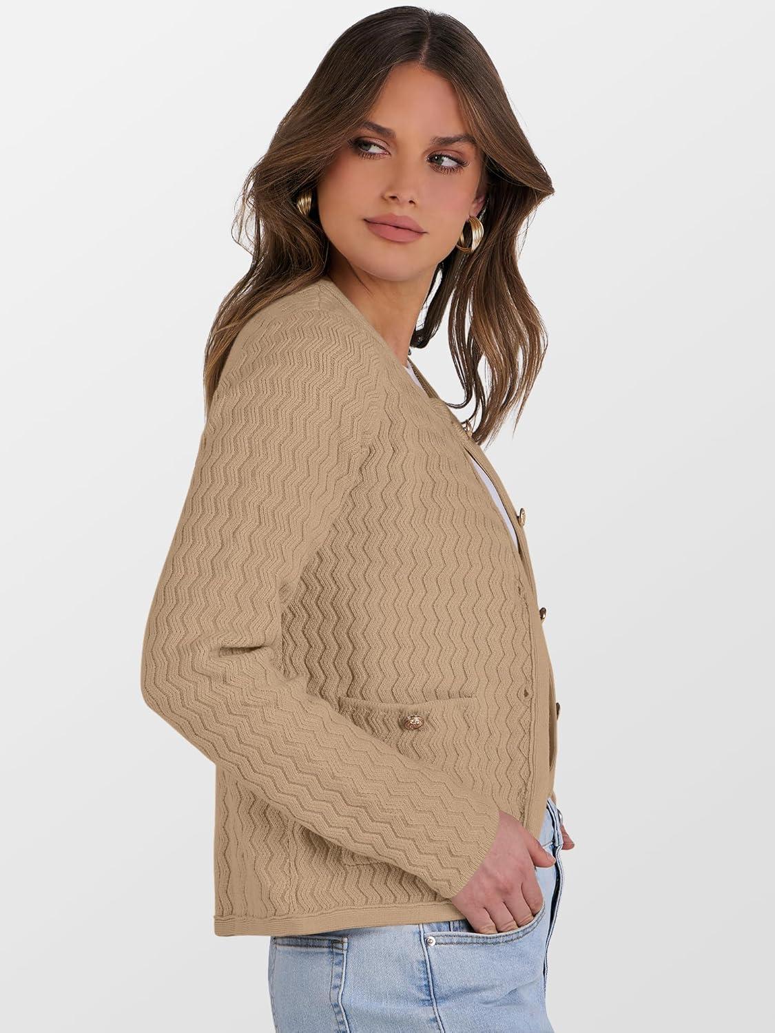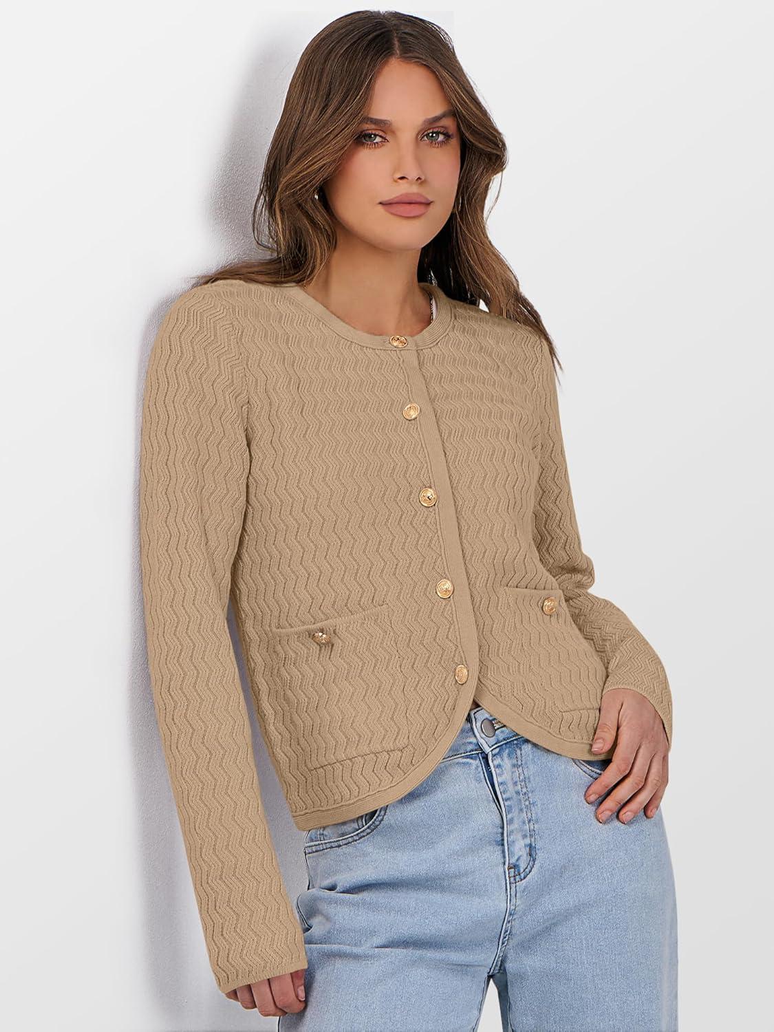 Caracilia Women's 2025 Fall Cardigan Sweaters Knitted Dressy Casual Jackets Trendy Outfits(Khaki)