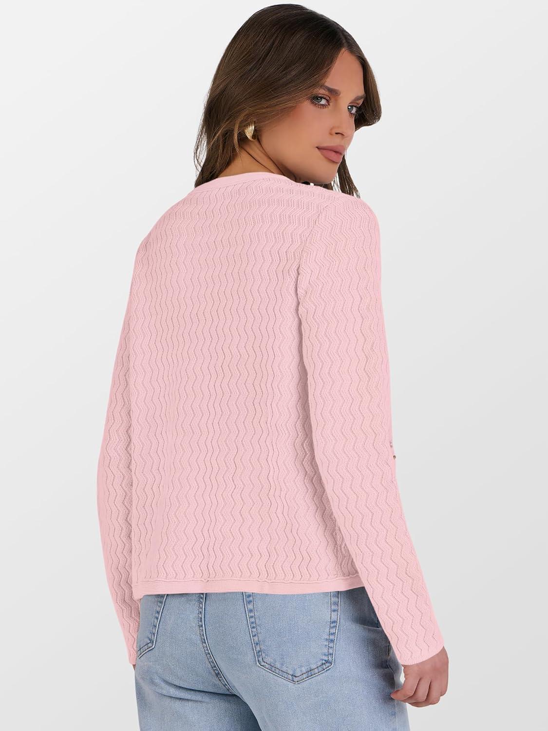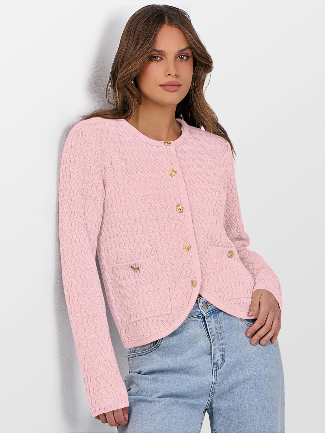 Caracilia Women's 2025 Fall Cardigan Sweaters Knitted Dressy Casual Jackets Trendy Outfits(Pink)