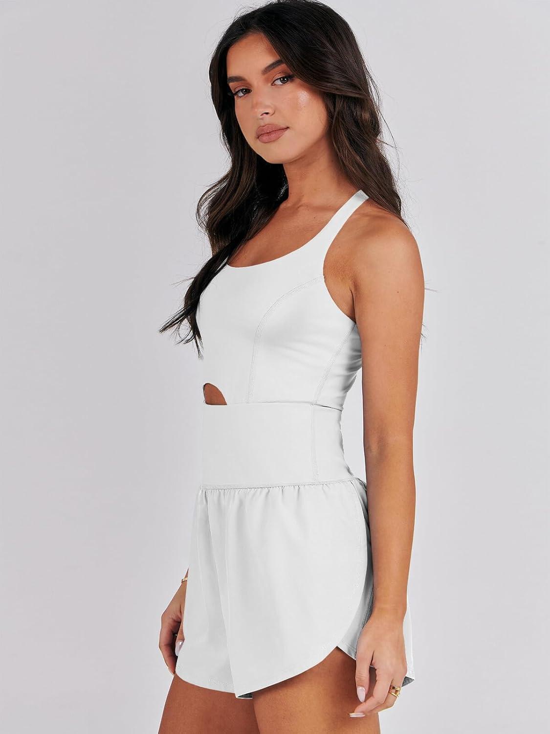 Caracilia Women’s Workout Athletic Romper Summer Sets Short Jumpsuits Onesie Running Outfits Exercise Gym 2025 Trendy Clothes(White)